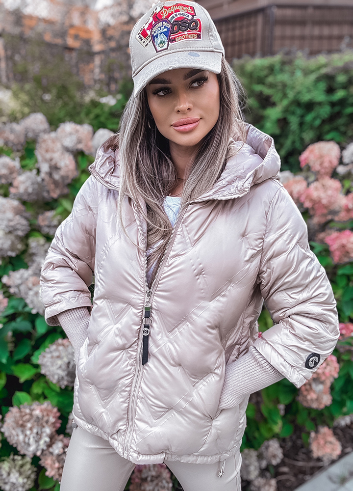 *Wzór: Pikowana kurtka z kapturem z ozdobnymi rękawami