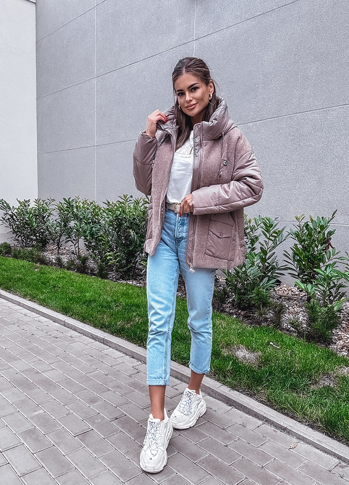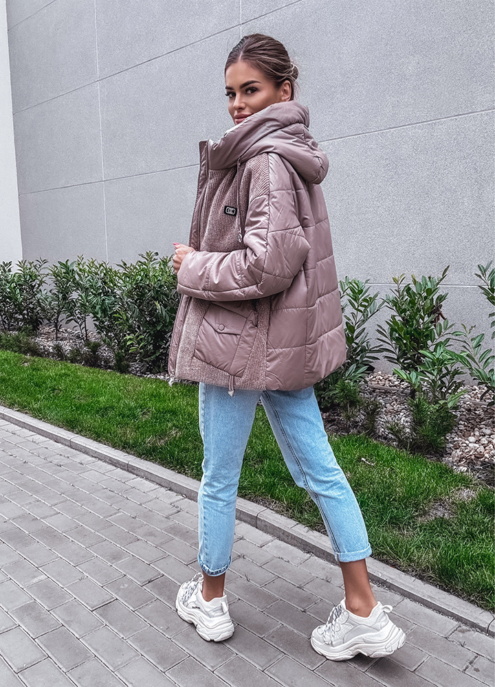 *Wzór: Kurtka z kapturem. Zapinana na suwak . Kurtka uszyta z dwóch różnych materiałów