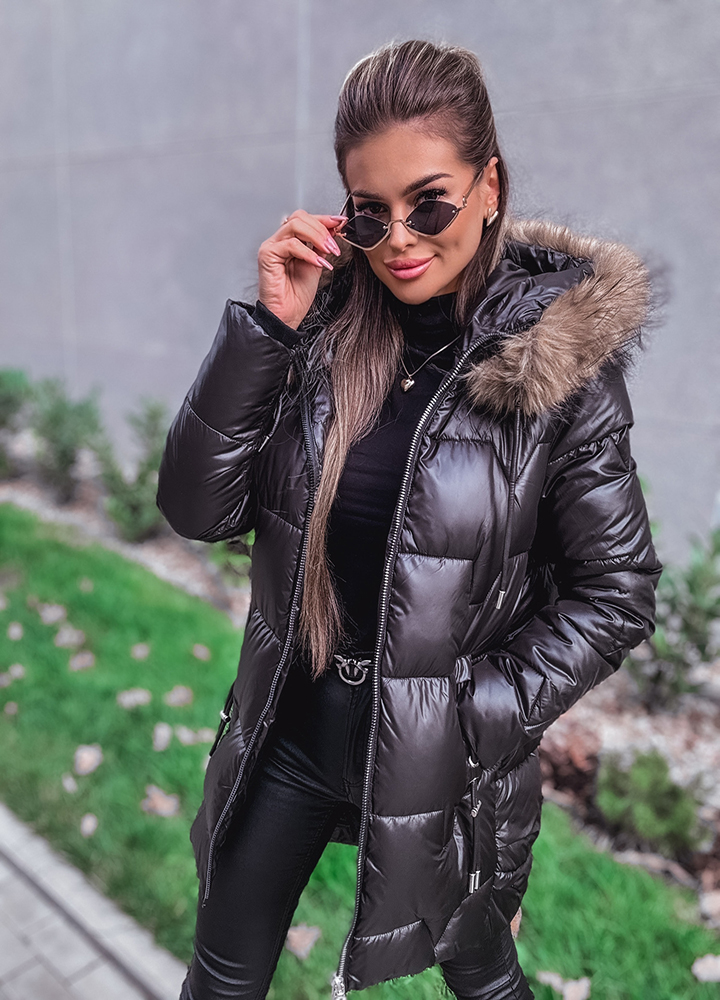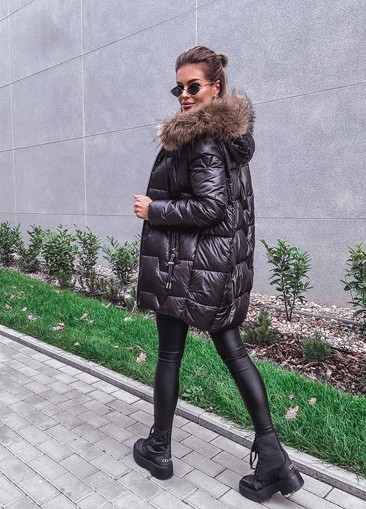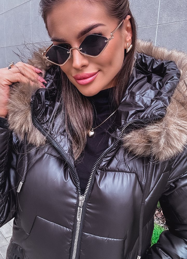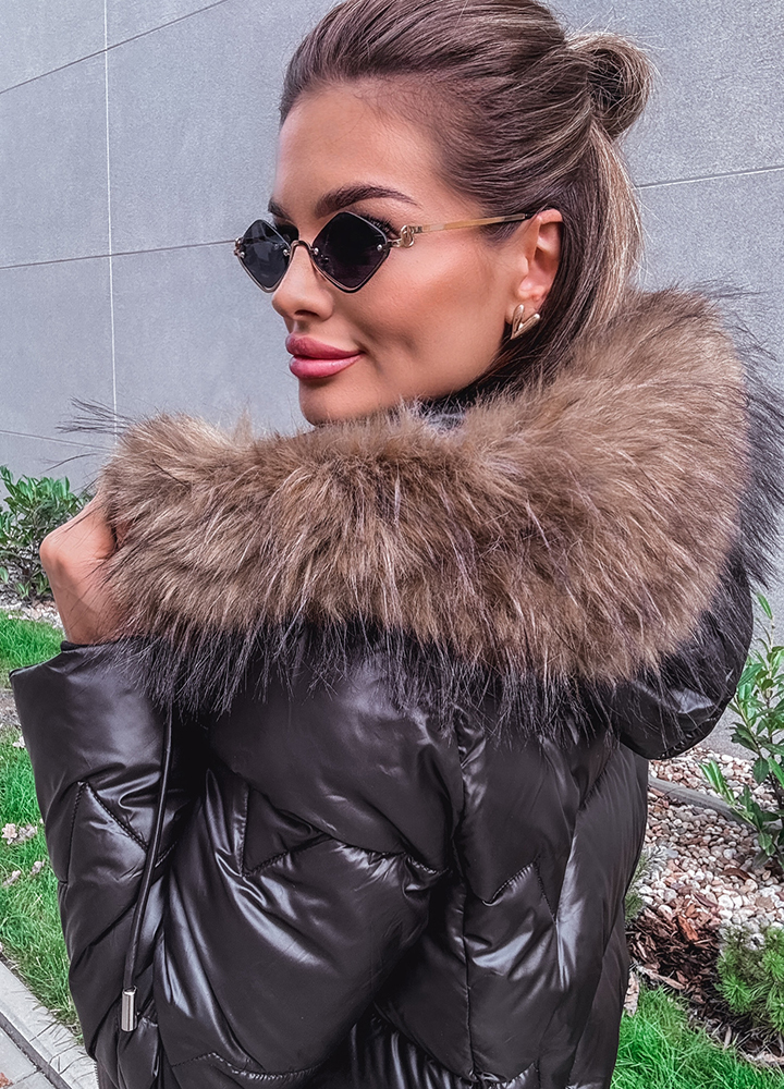 *Wzór: Pikowana kurtka z kapturem futerkiem