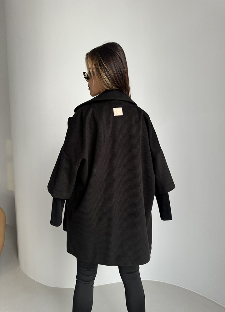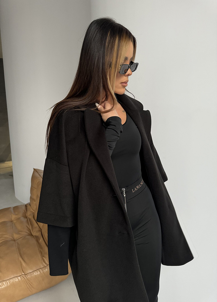 *Wzór: Flauszowy płaszcz o prostym kroju i sweterkowym rękawku. PRODUKT POLSKI.