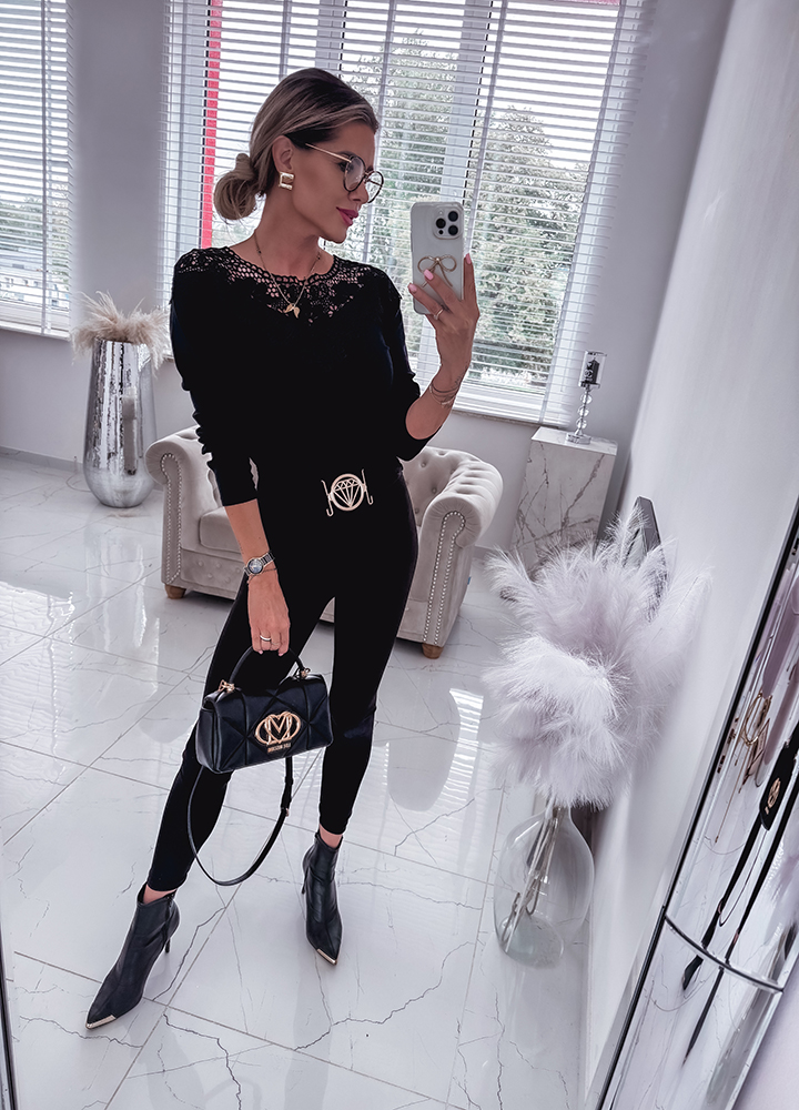 Szczegóły: Bawełniane bordowe legginsy z efektownym pasem