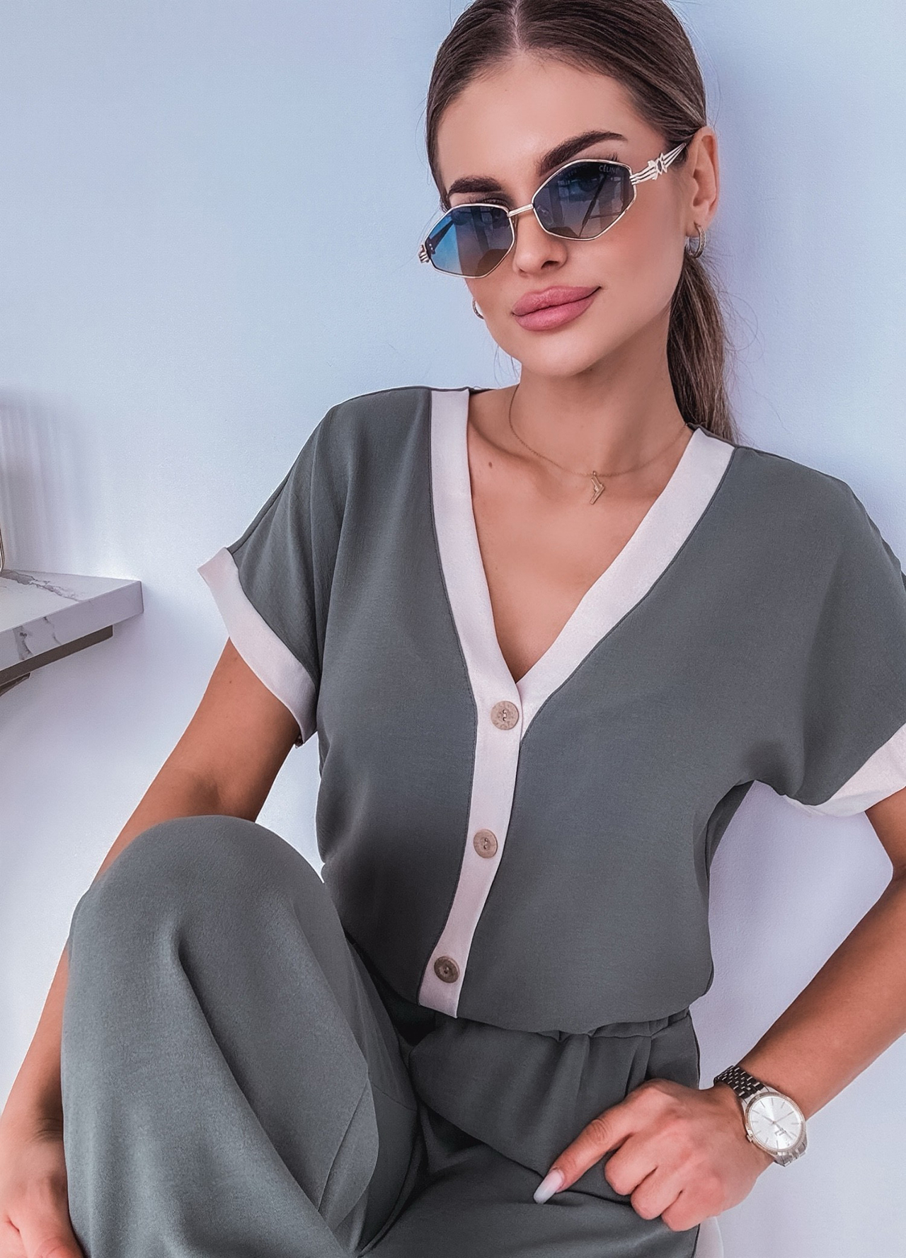 *Szczegóły: Letni komplet bluzka z lampasem + spodnie.