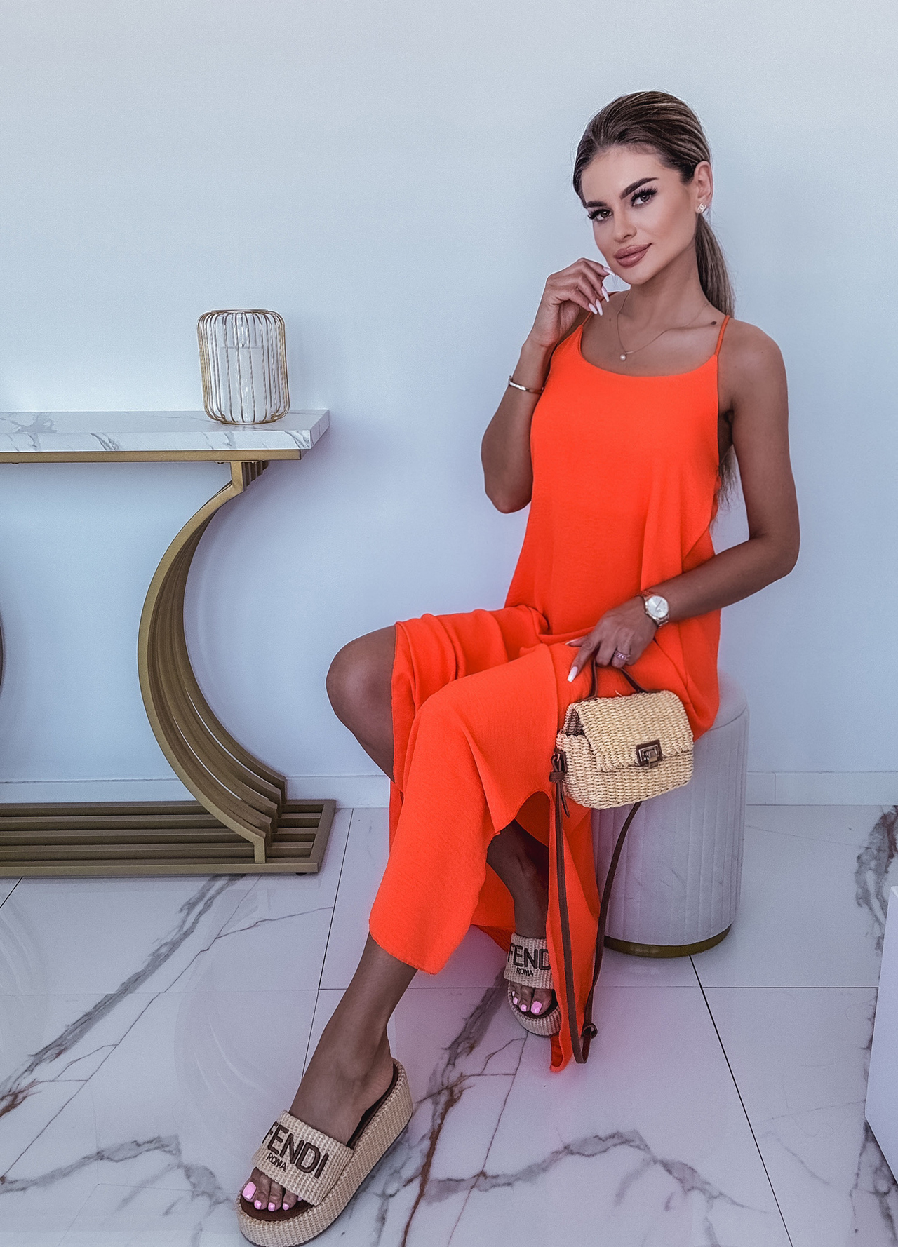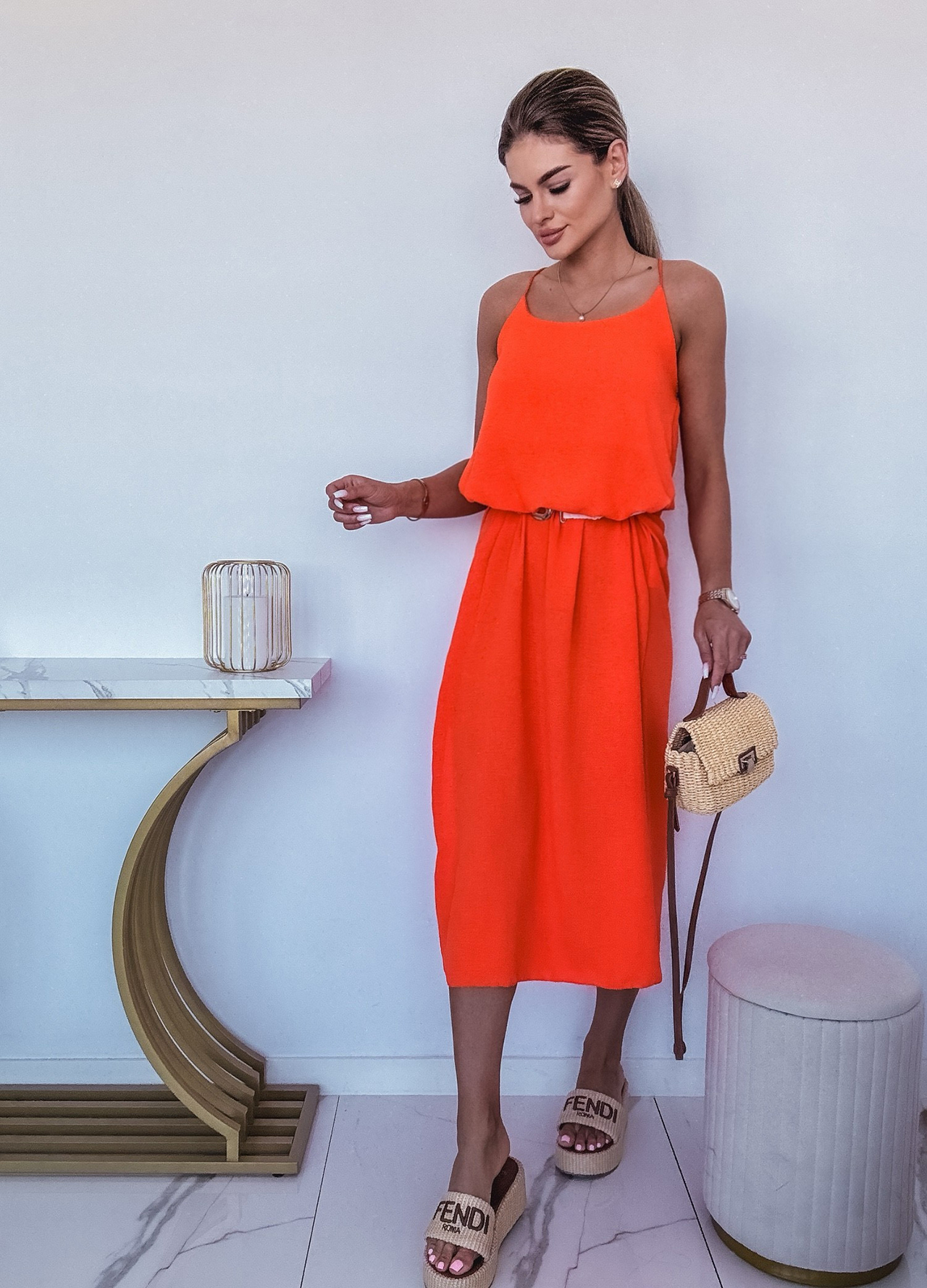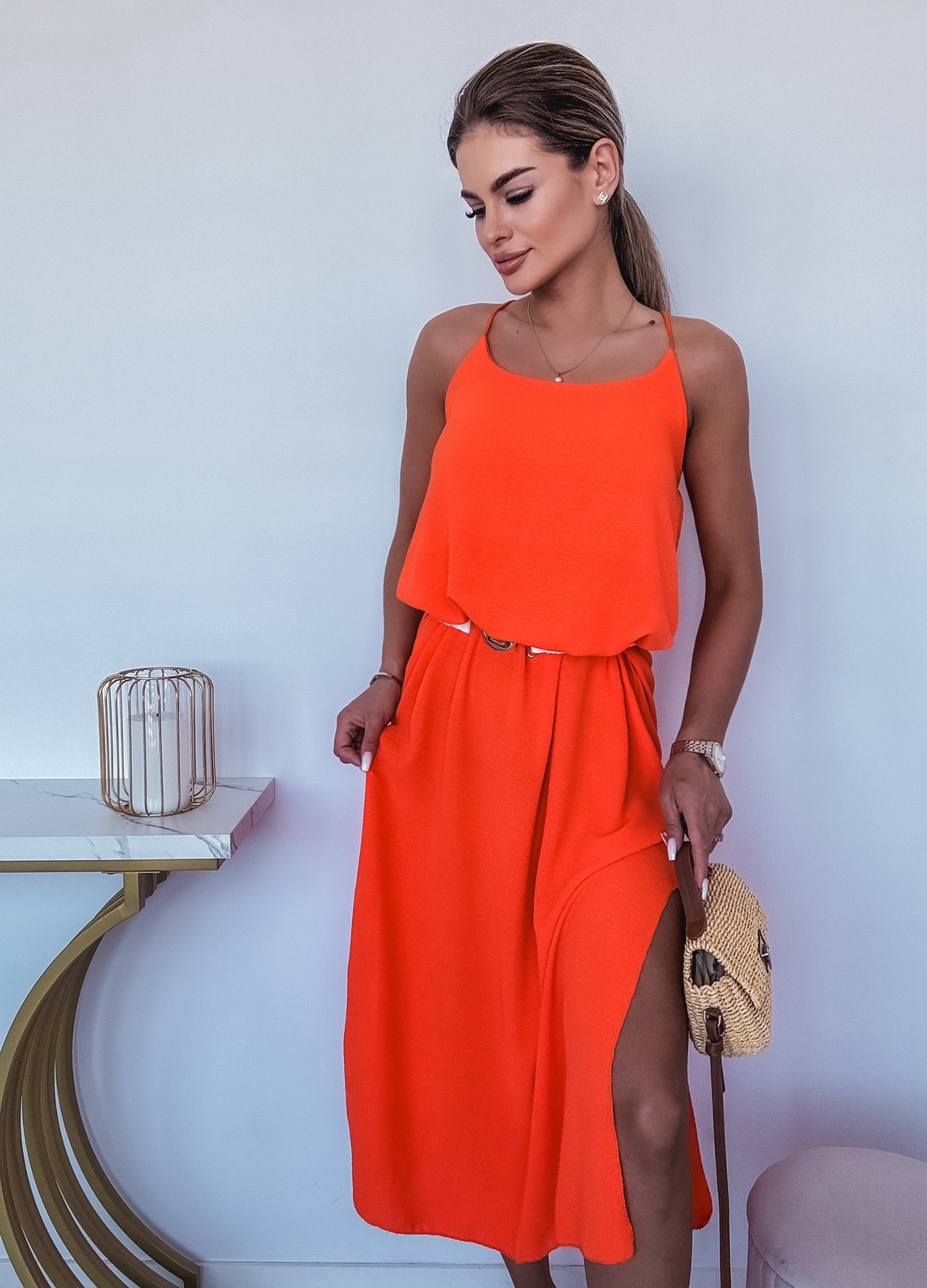 *Wzór: Sukienka z rozporkiem, na ramiączkach bez pleców. *Pasek nie jest w zestawie.