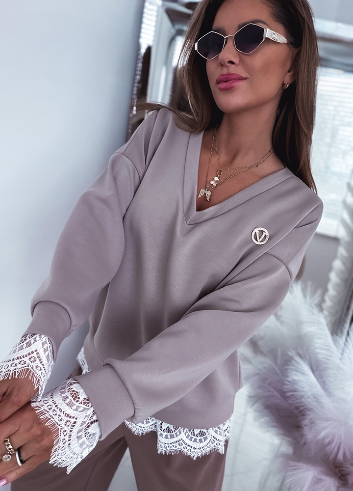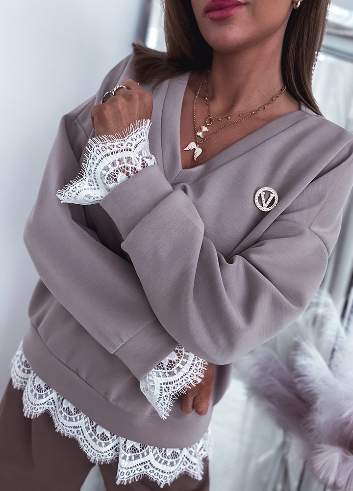 *Wzór: bluza masełkowa z koronką i broszką