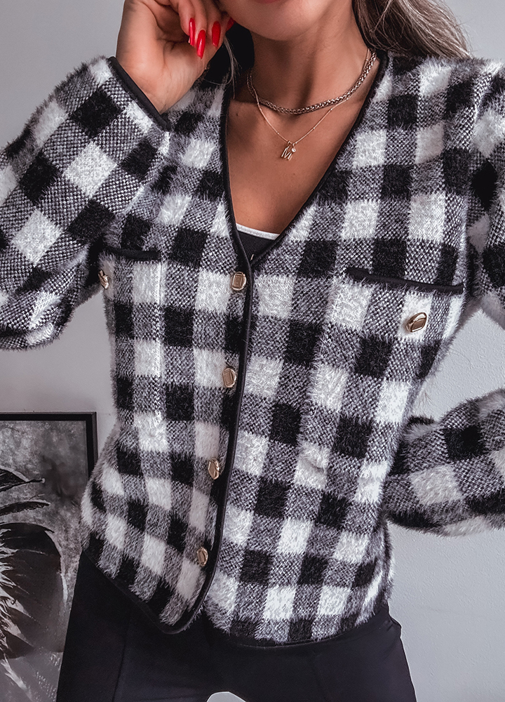 *Wzór: rozpinany sweter w kratkę z kieszonkami rozmiar one size
