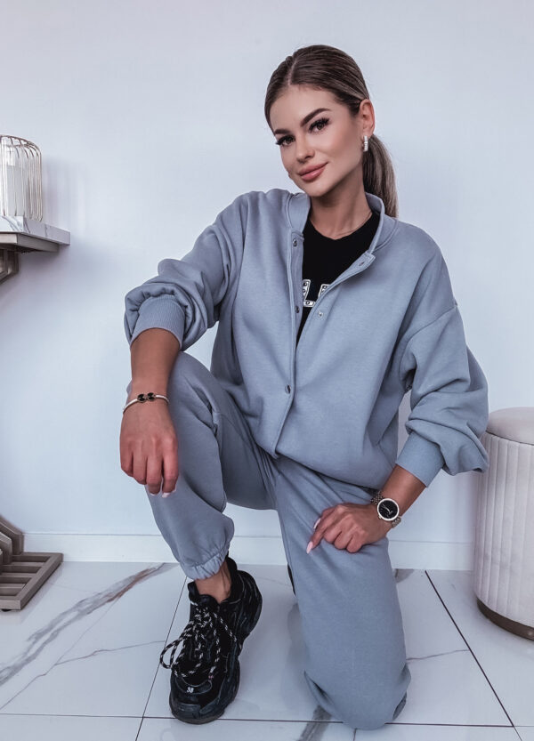 *Szczegóły: Bawełniany komplet dresowy, ocieplany. Bluza zapinana na napy + spodnie ze ściągaczem.