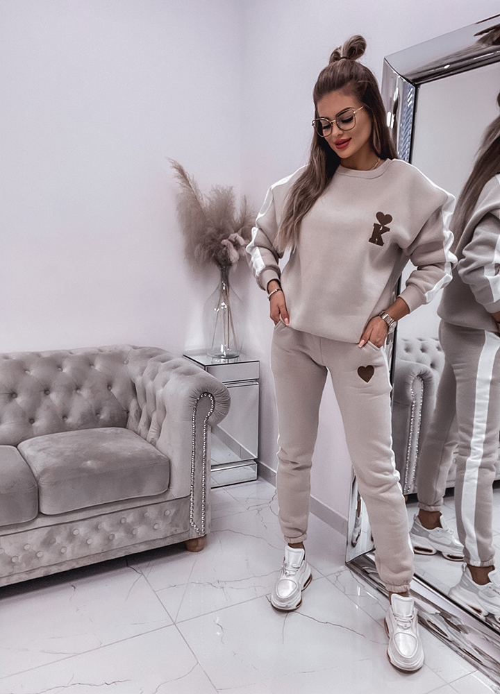 *Szczegóły: Bawełniany, ocieplany komplet dresowy z wyszytą aplikacją