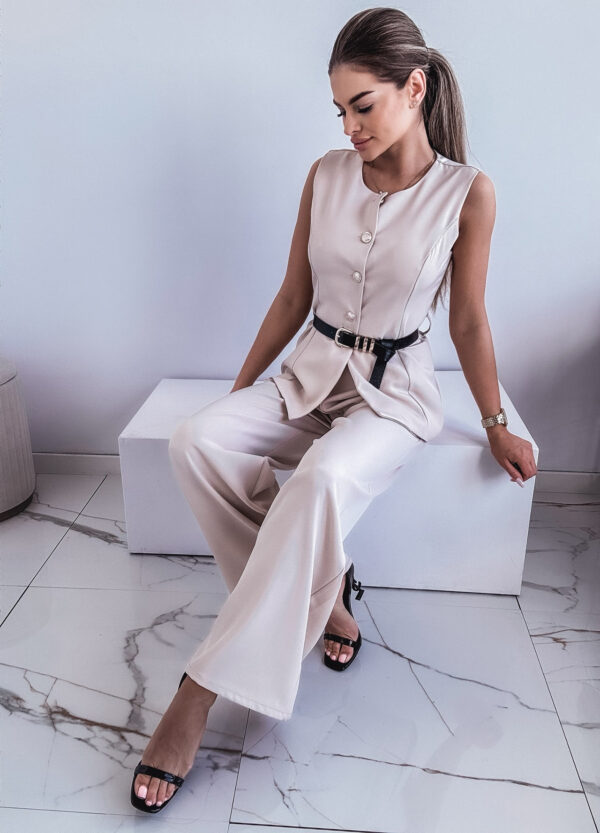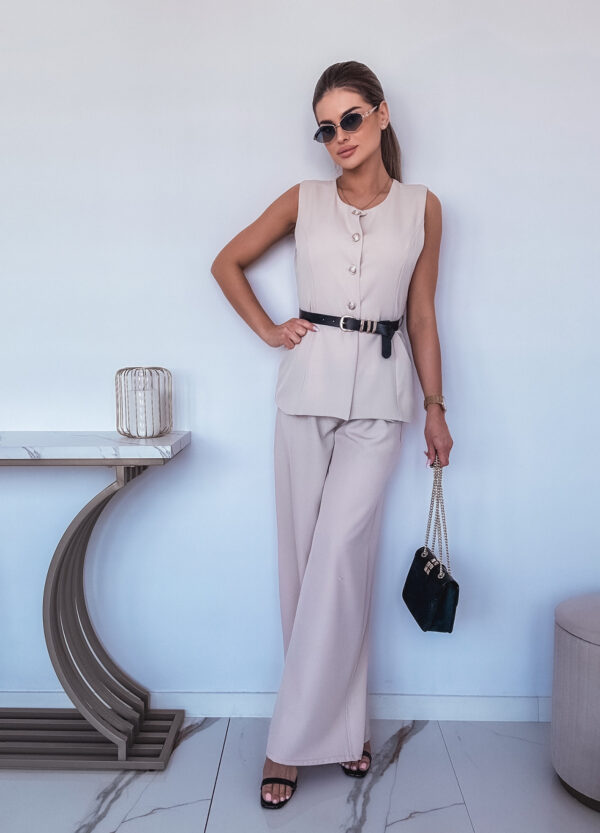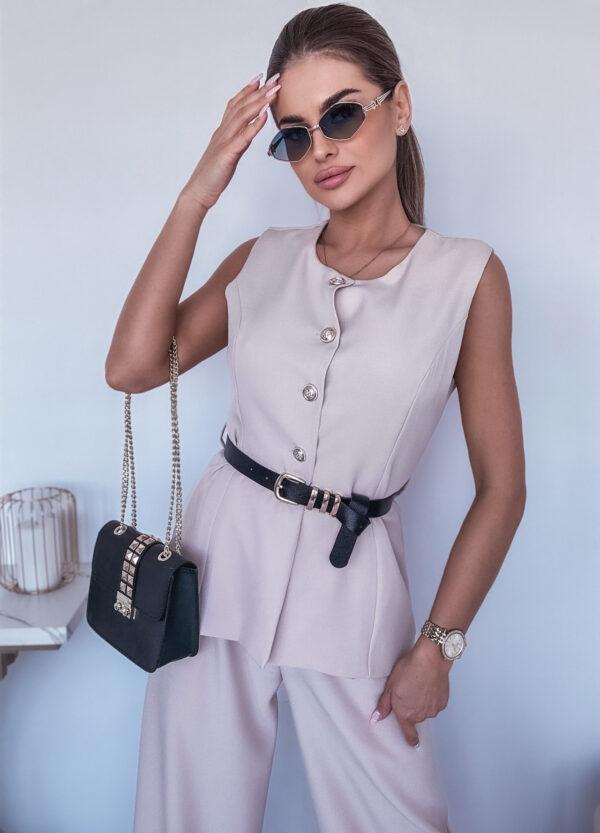 *Szczegóły: Elegancki komplet / spodnie z szeroką nogawka + bezrękawnik. Pasek w zestawie.