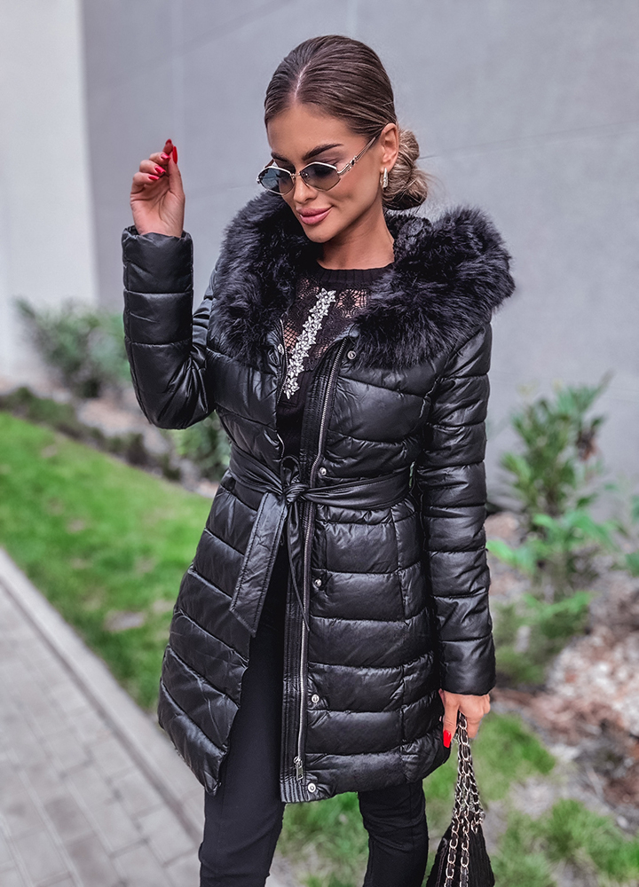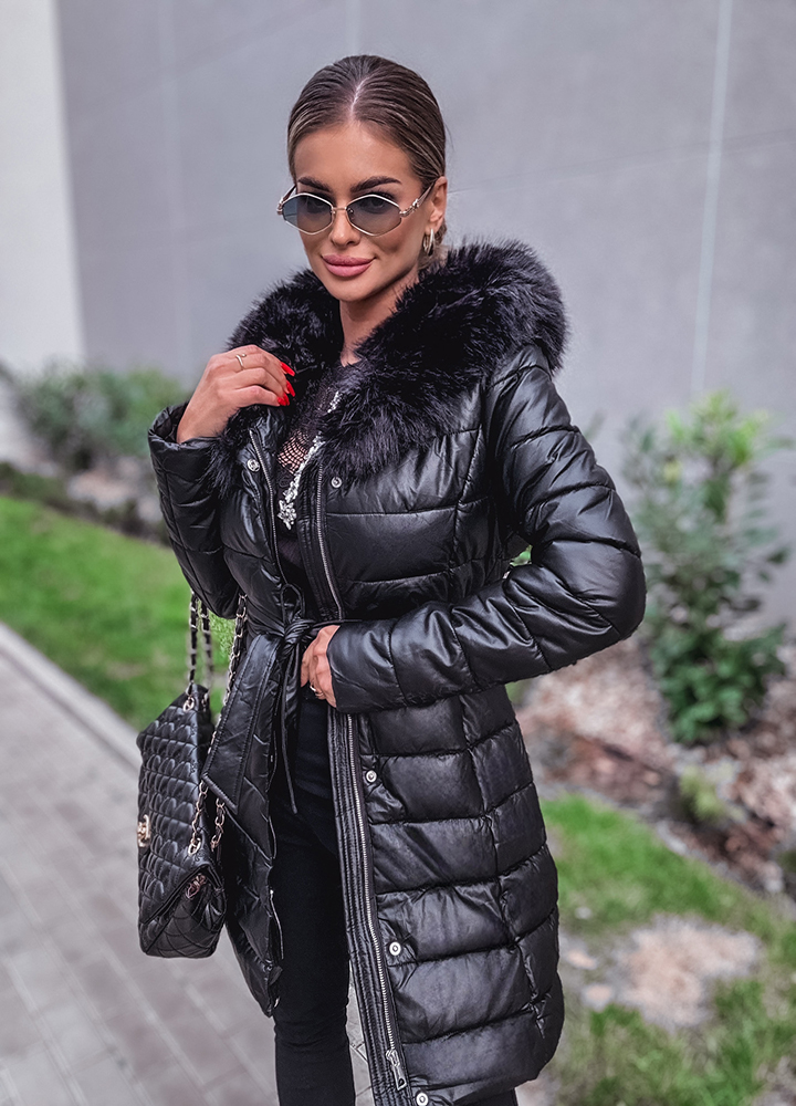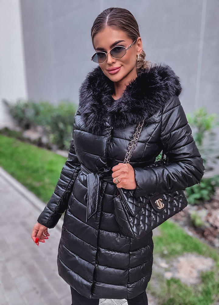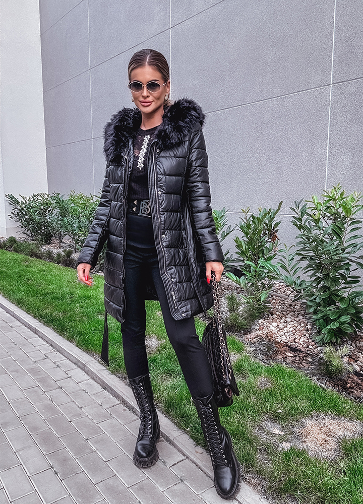 *Wzór: Płaszcz pikowany zapinany na zamek z futerkiem