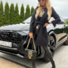 *Wzór: Flauszowy płaszcz z wiązaniem. Ozdobne złote guziki na pagonach.