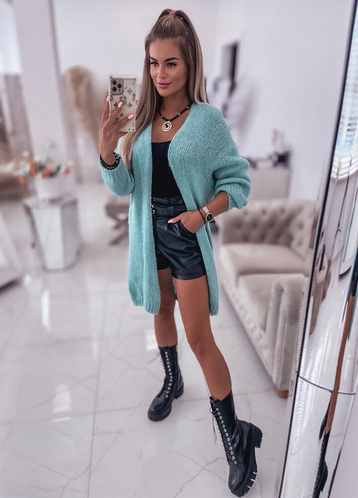 *Wzór: Miękki sweter, kardigan pleciony w kolorze niebieskim.