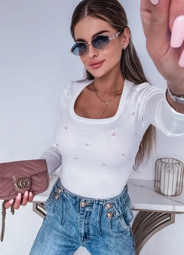 *Wzór: Bawełniana bluzka prążkowana z wyszywanym nadrukiem.