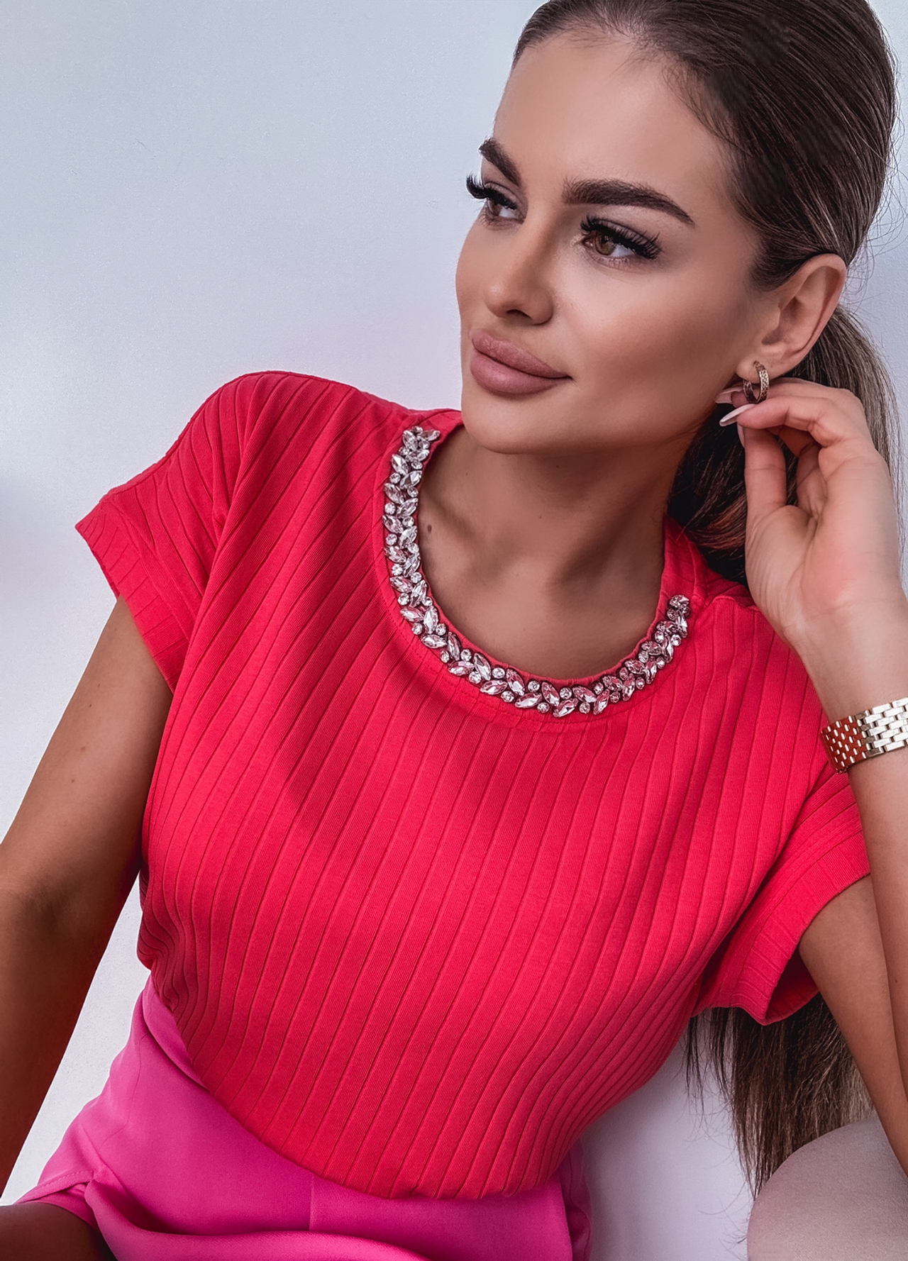 *Wzór: bawełniana bluzka prążkowana z cyrkoniami przy dekolcie.