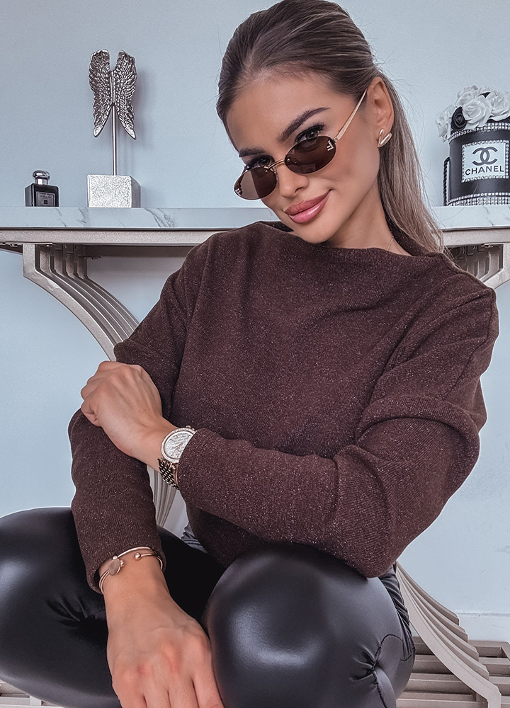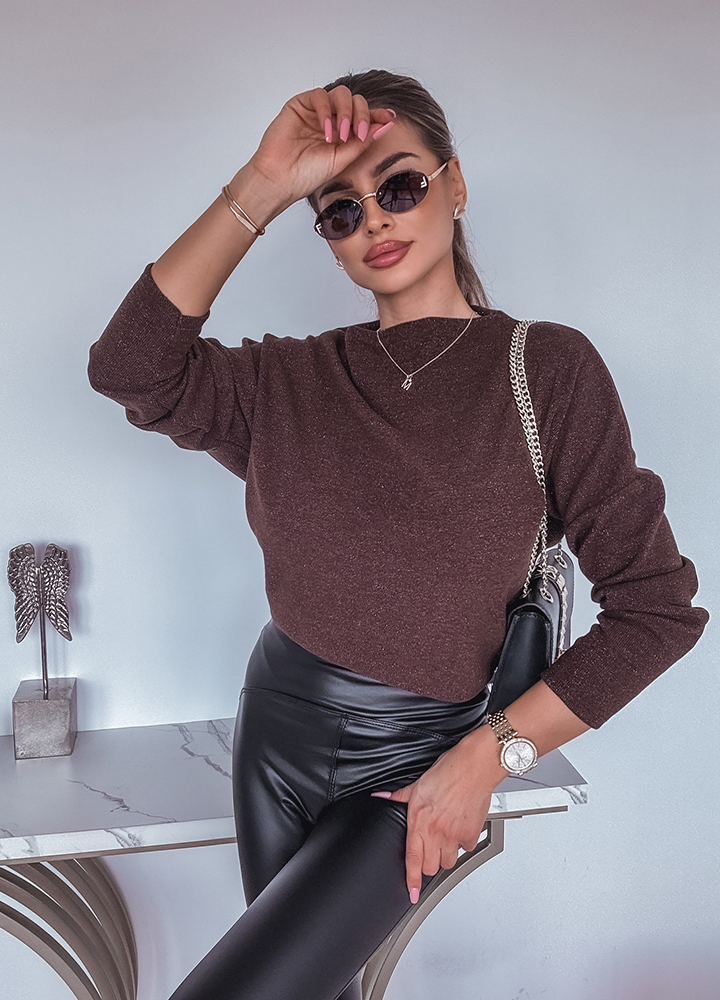 *Wzór: brązowa bluzka prążkowana ze srebrną nitką