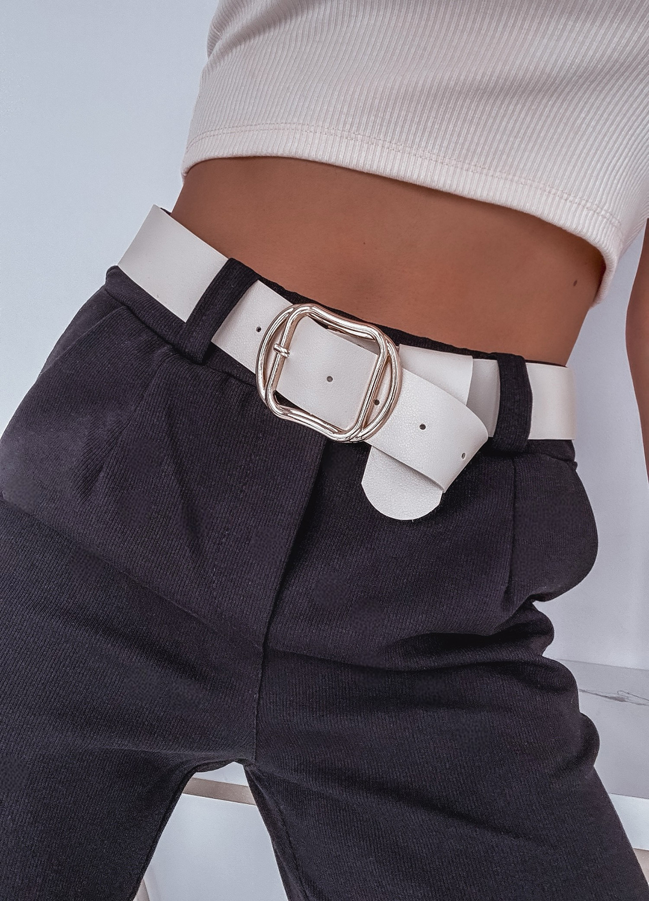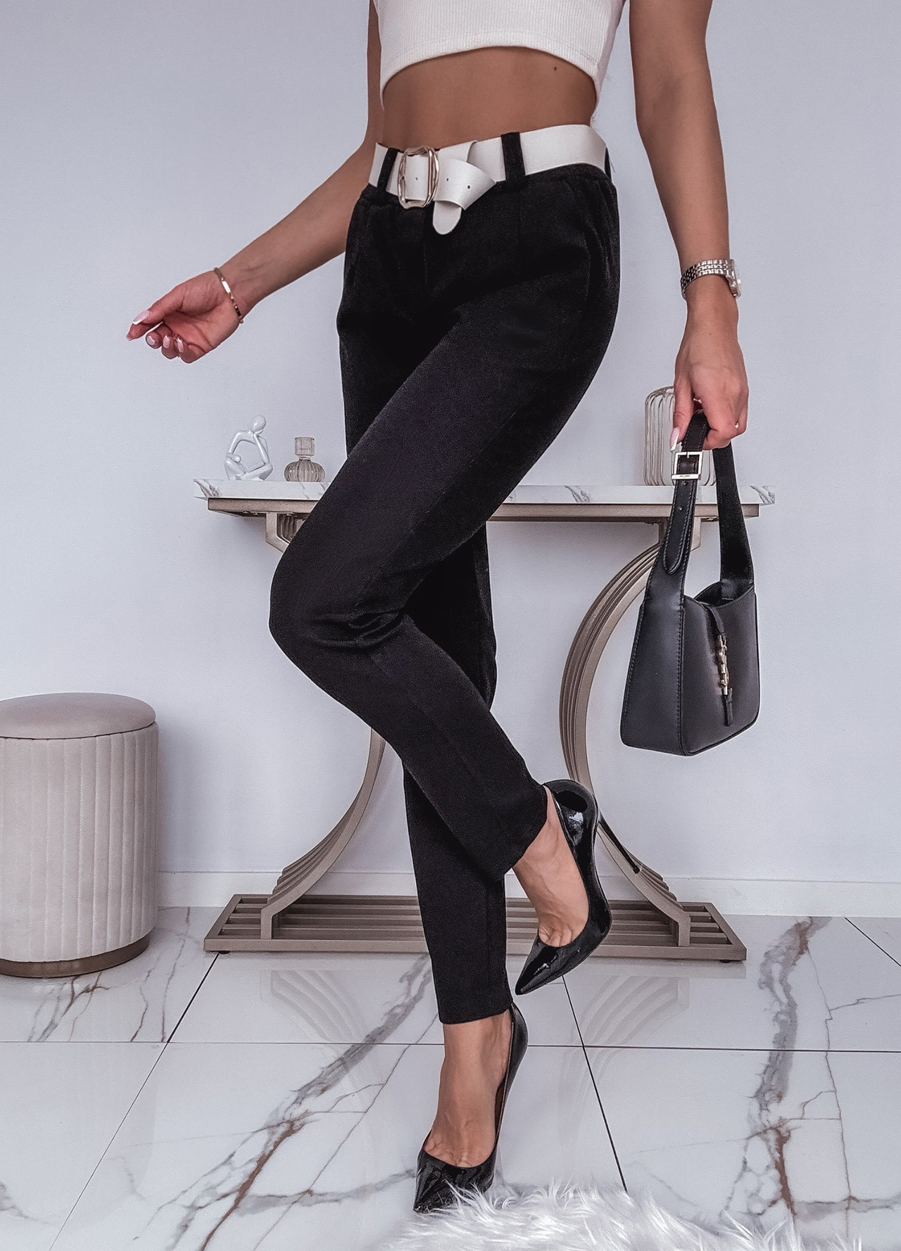 * Szczegóły: legginsy prążkowane z paskiem w zestawie.