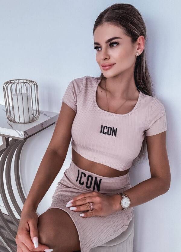 *Szczegóły: bawełniany komplet prążkowany. Spódnica ołówkowa + top.