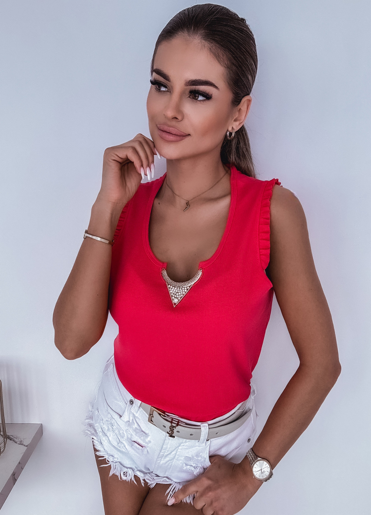 *Wzór: Bawełniany top prążkowany na ramiączkach.