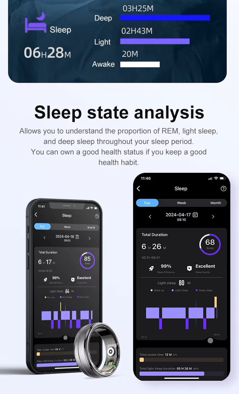 Dane w czasie rzeczywistym dostępne przez aplikację QRing. Nawet jeśli pierścień nie jest aktualnie połączony z telefonem, potrafi niezależnie monitorować organizm, rejestrować poziom tlenu we krwi oraz tętno. Dane zostaną zsynchronizowane z aplikacją przy następnym połączeniu.
