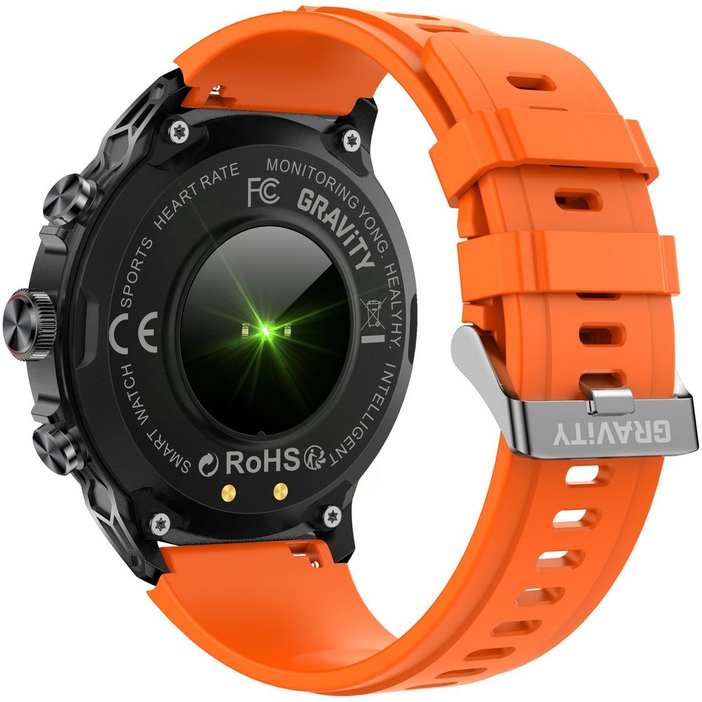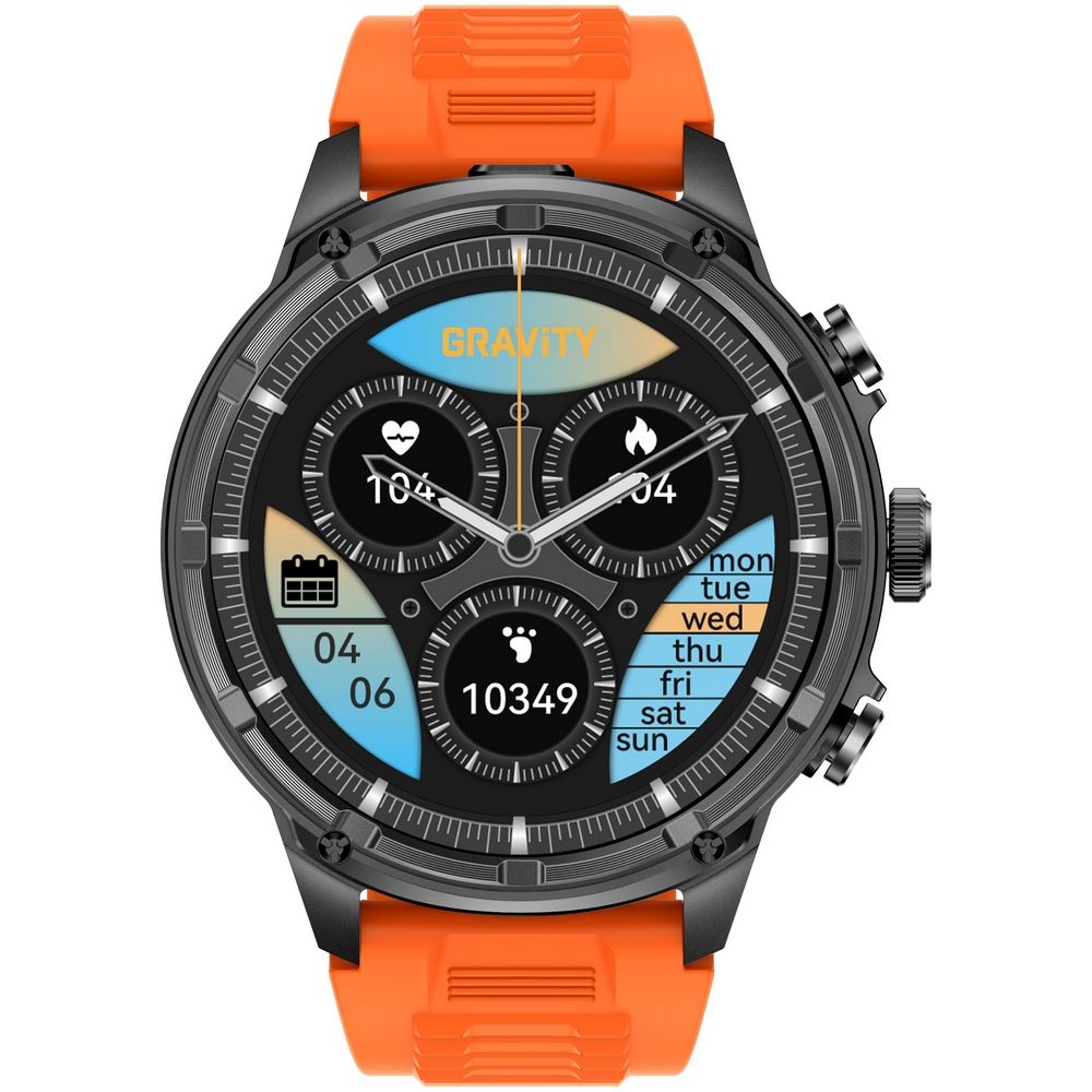 Gravity GT41-4 smartwatch męski został stworzony dla osób, które cenią funkcjonalność, wygodę i nowoczesny wygląd. W zestawie znajduje się pomarańczowy pasek silikonowy oraz dodatkowa stalowa bransoleta, dzięki czemu możesz łatwo dopasować zegarek do okazji. Na pomarańczowym pasku silikonowym model zyskuje bardziej sportowy i praktyczny charakter, idealny na co dzień, spacer, trening czy wyjazd. Po założeniu stalowej bransolety prezentuje się bardziej elegancko, nowocześnie i solidnie.