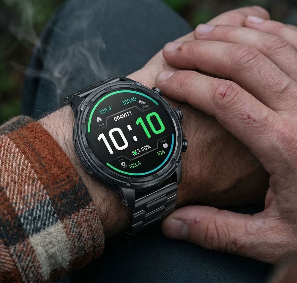 To model dla mężczyzn, którzy chcą mieć na nadgarstku coś więcej niż zwykły zegarek. Wyrazista tarcza, masywna koperta i sportowe detale sprawiają, że GT41-4 świetnie wpisuje się w styl aktywnego życia. Zegarek doskonale wygląda w plenerze, podczas spacerów, wypraw, nad wodą czy w lesie, ale równie dobrze sprawdzi się w pracy i na co dzień. Na zdjęciach widać także funkcje związane z aktywnością, takie jak monitoring tętna, licznik kroków oraz dane treningowe, co dodatkowo podkreśla jego praktyczny charakter.