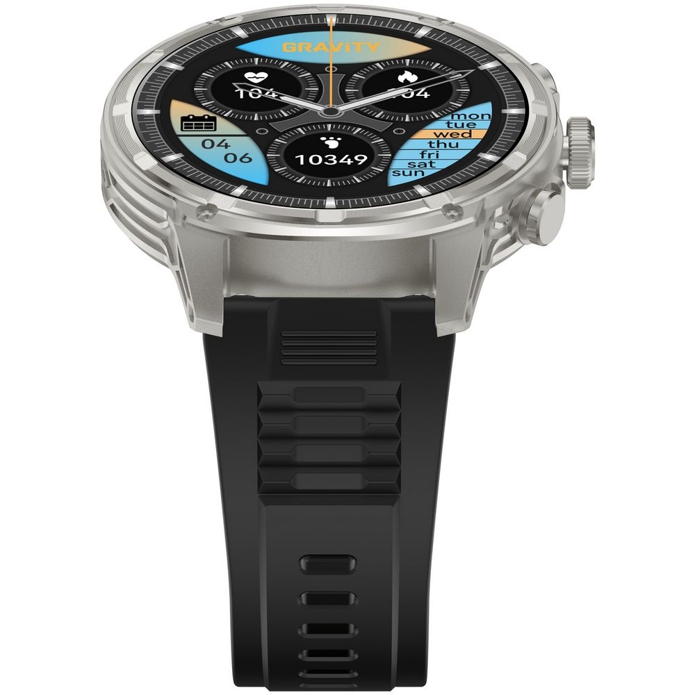 Smartwatch męski Gravity GT41-3 to idealne połączenie nowoczesnej technologii, wyrazistego stylu i terenowego charakteru. Ten sportowy smartwatch z okrągłą kopertą przyciąga uwagę mocnym, dynamicznym designem i świetnie prezentuje się na nadgarstku. Czarna kolorystyka nadaje mu zdecydowany, męski wygląd, a solidna forma sprawia, że doskonale pasuje zarówno do codziennego ubioru, jak i stylizacji outdoorowych.