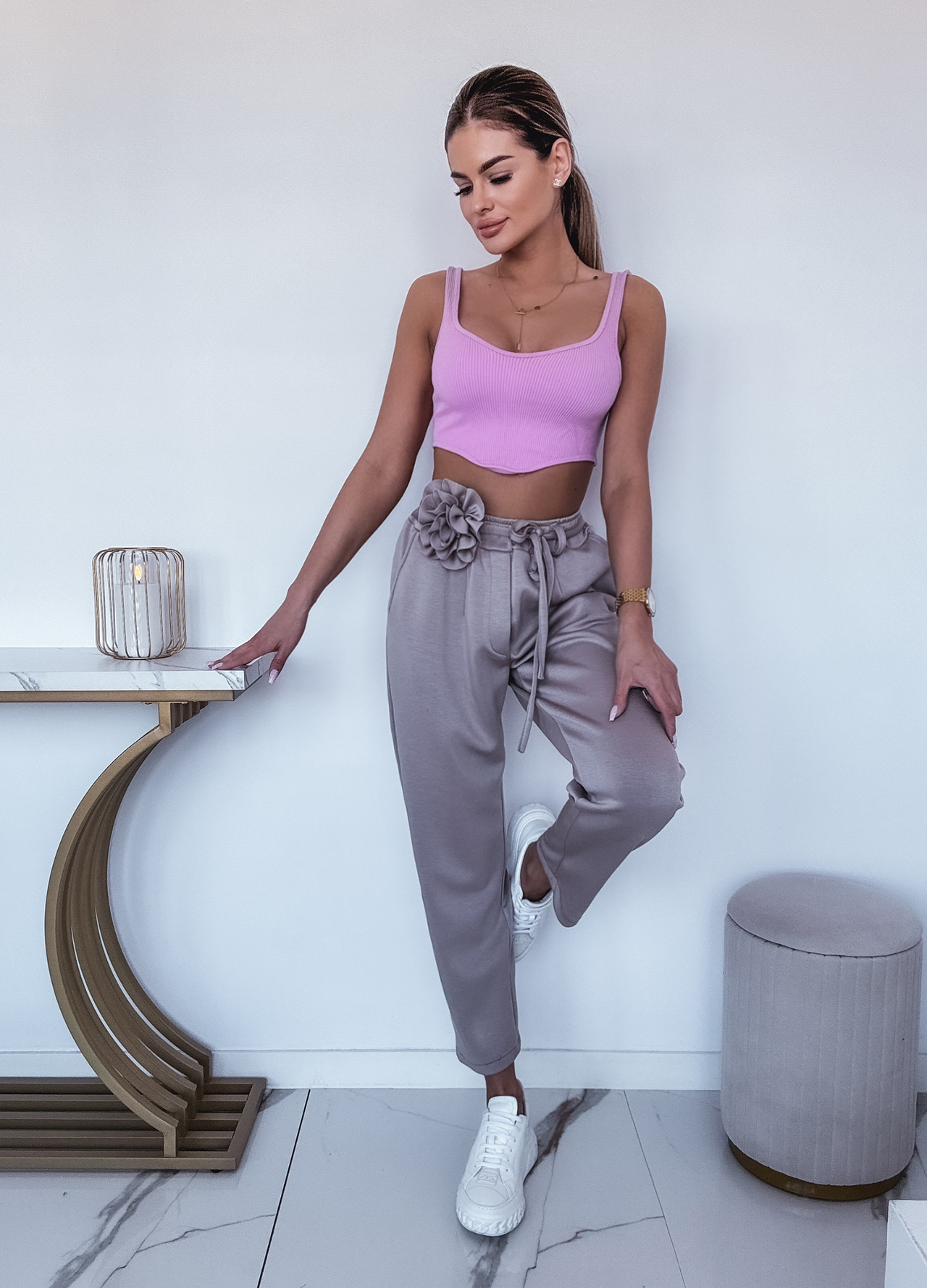 * Szczegóły: Spodnie chinosy z wiązaniem w pasie.