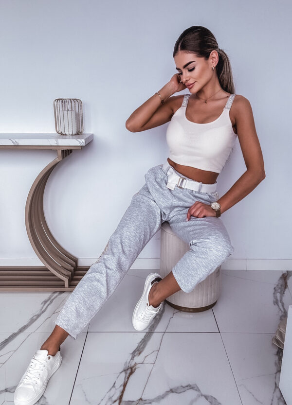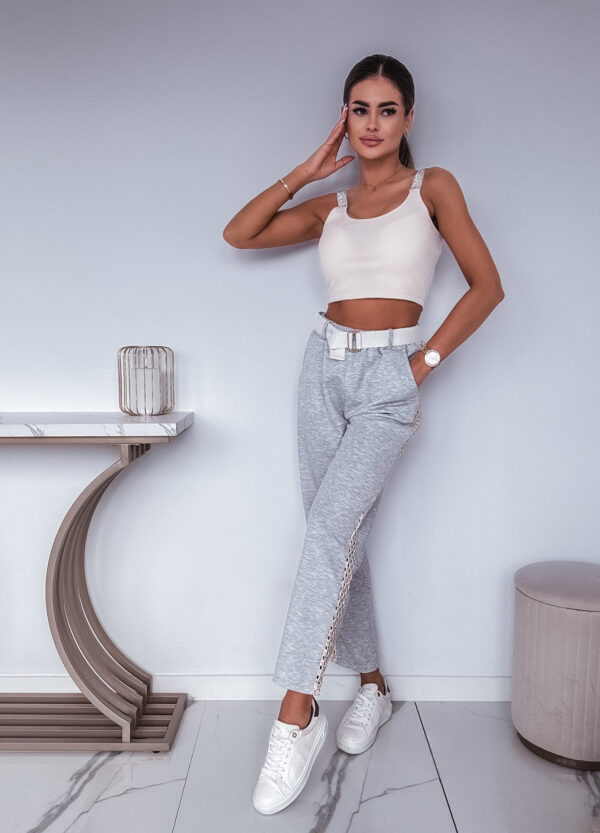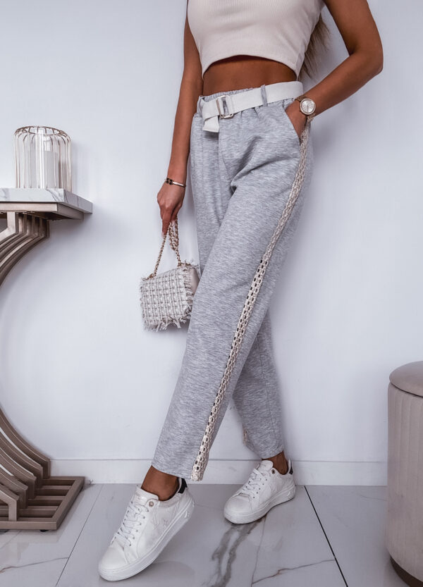 * Szczegóły: Spodnie z szeroką nogawką w kolorze szarym
