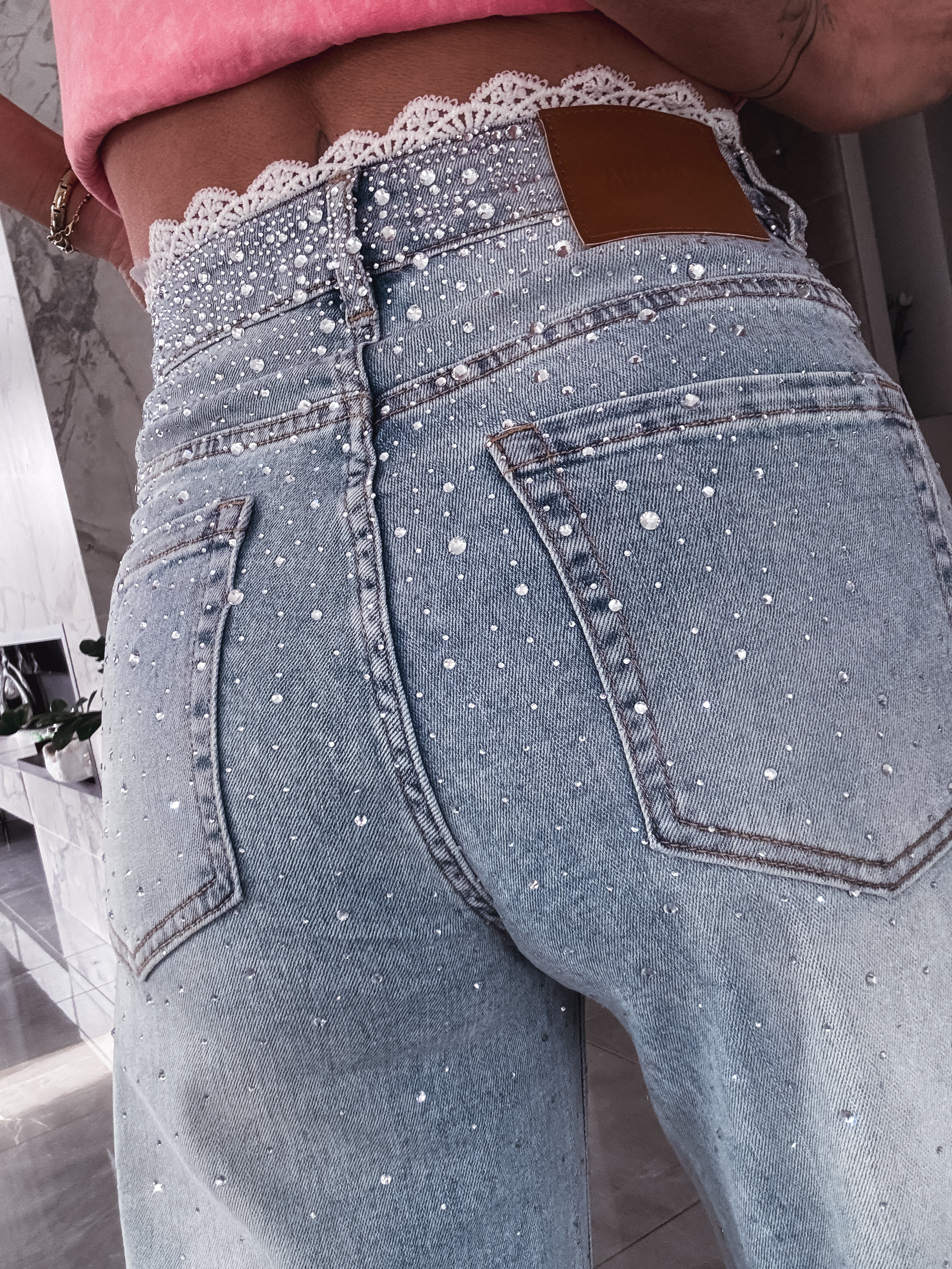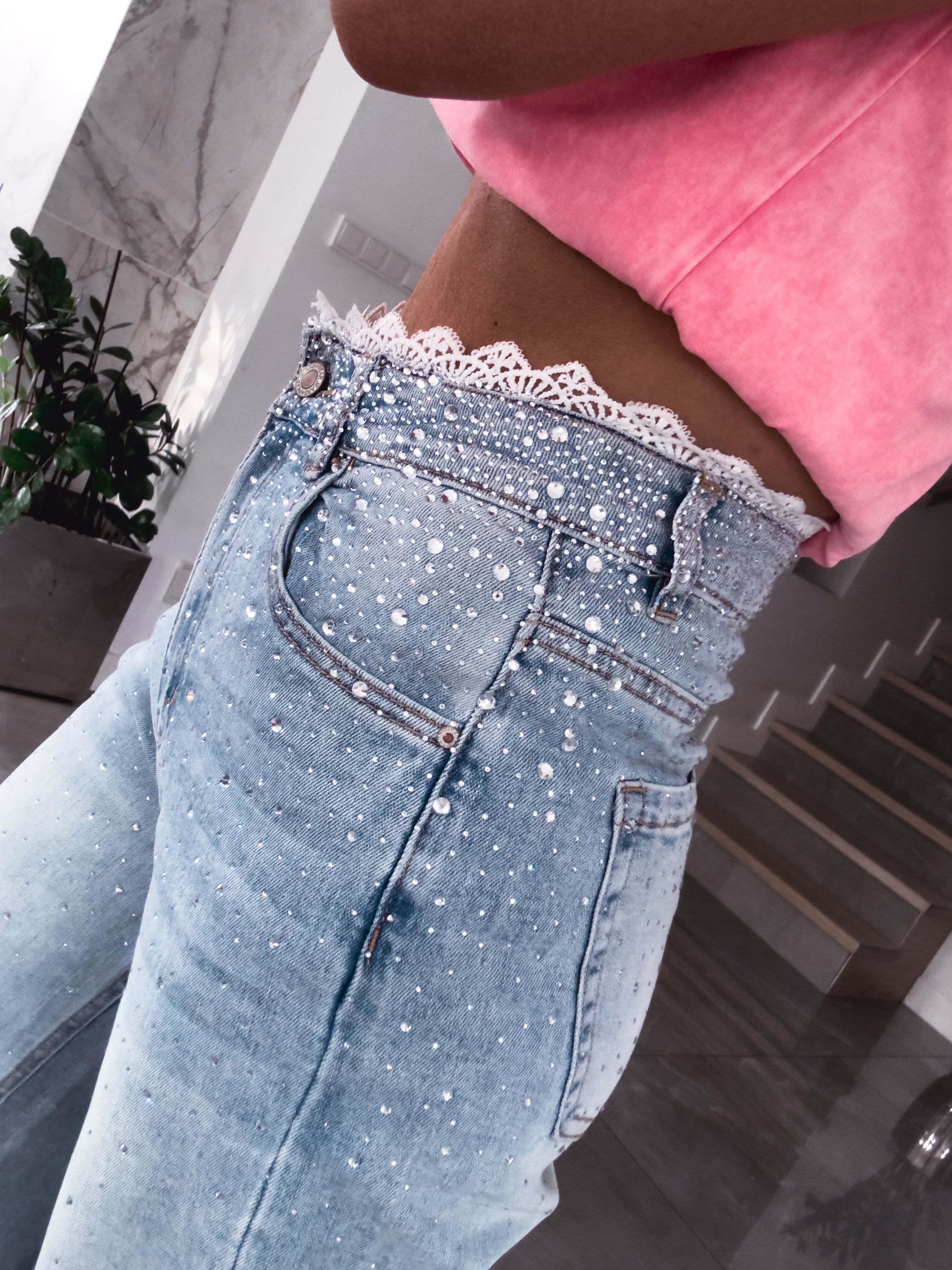 * Szczegóły: spodnie jeansowe z cyrkoniami