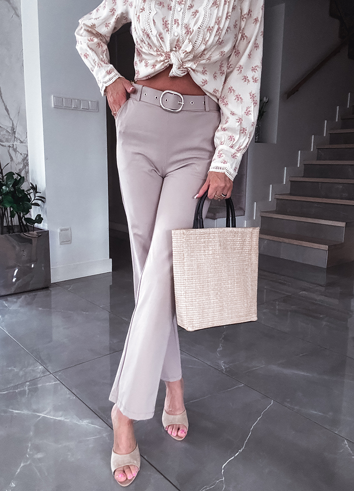 * Szczegóły: spodnie materiałowe z szeroką nogawką
