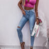 * Szczegóły: Spodnie jeansowe z wysokim stanem. Model -rurki.