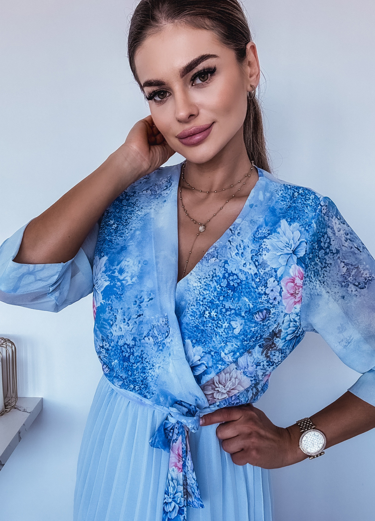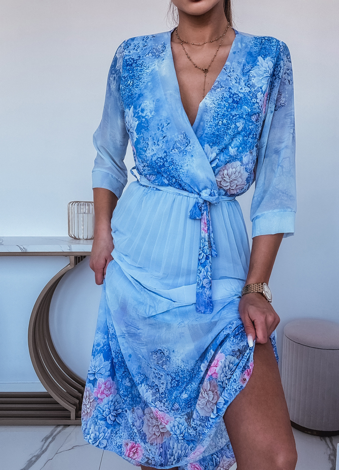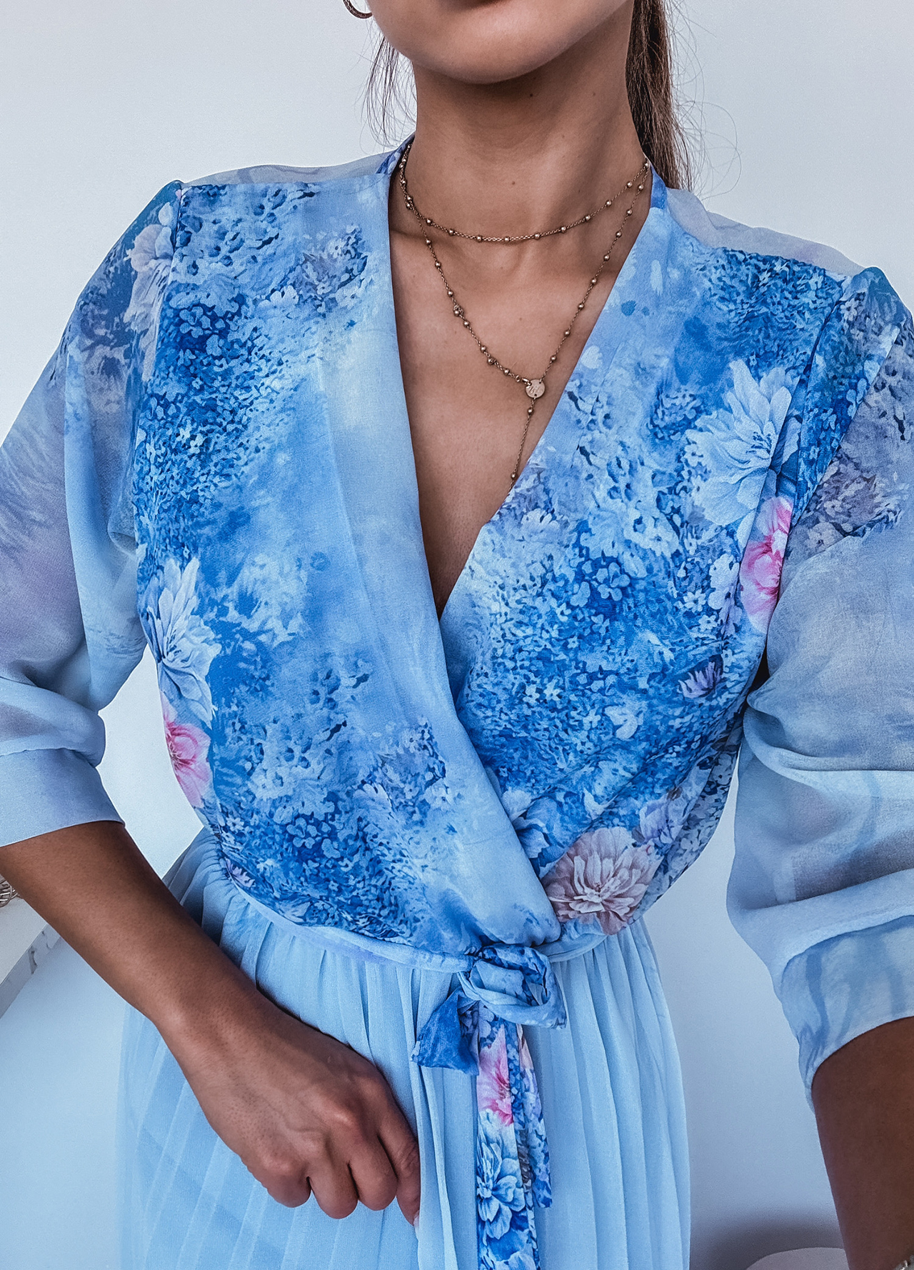 *Wzór: Sukienka maxi w kwiaty z kopertowym dekoltem.