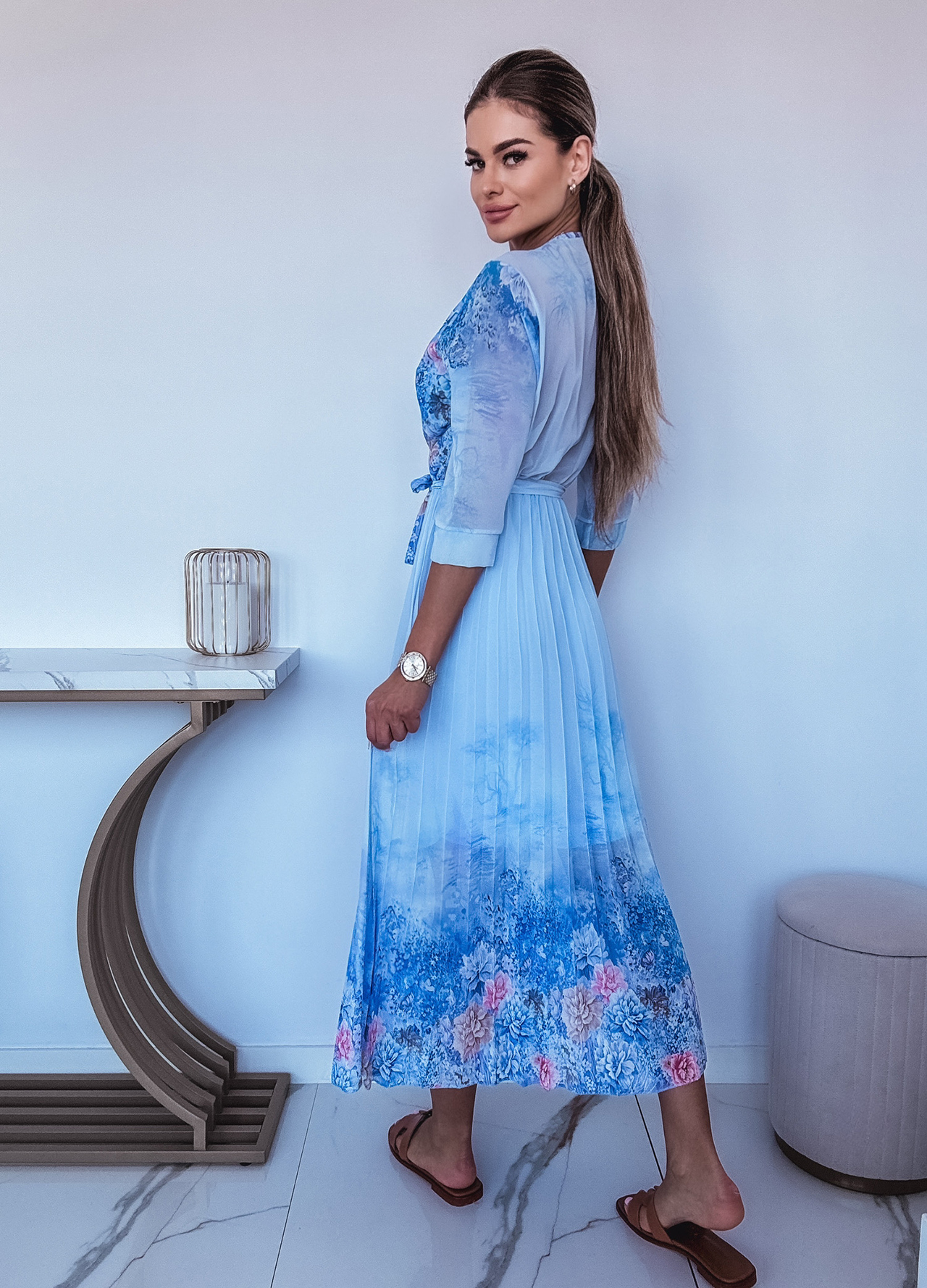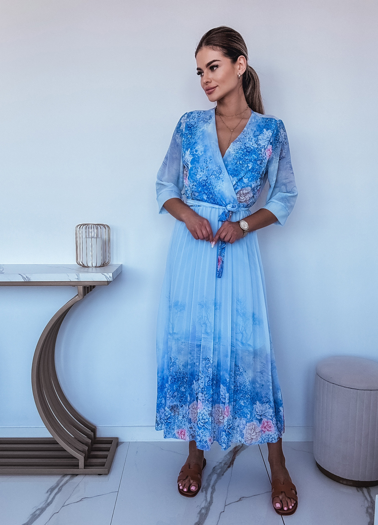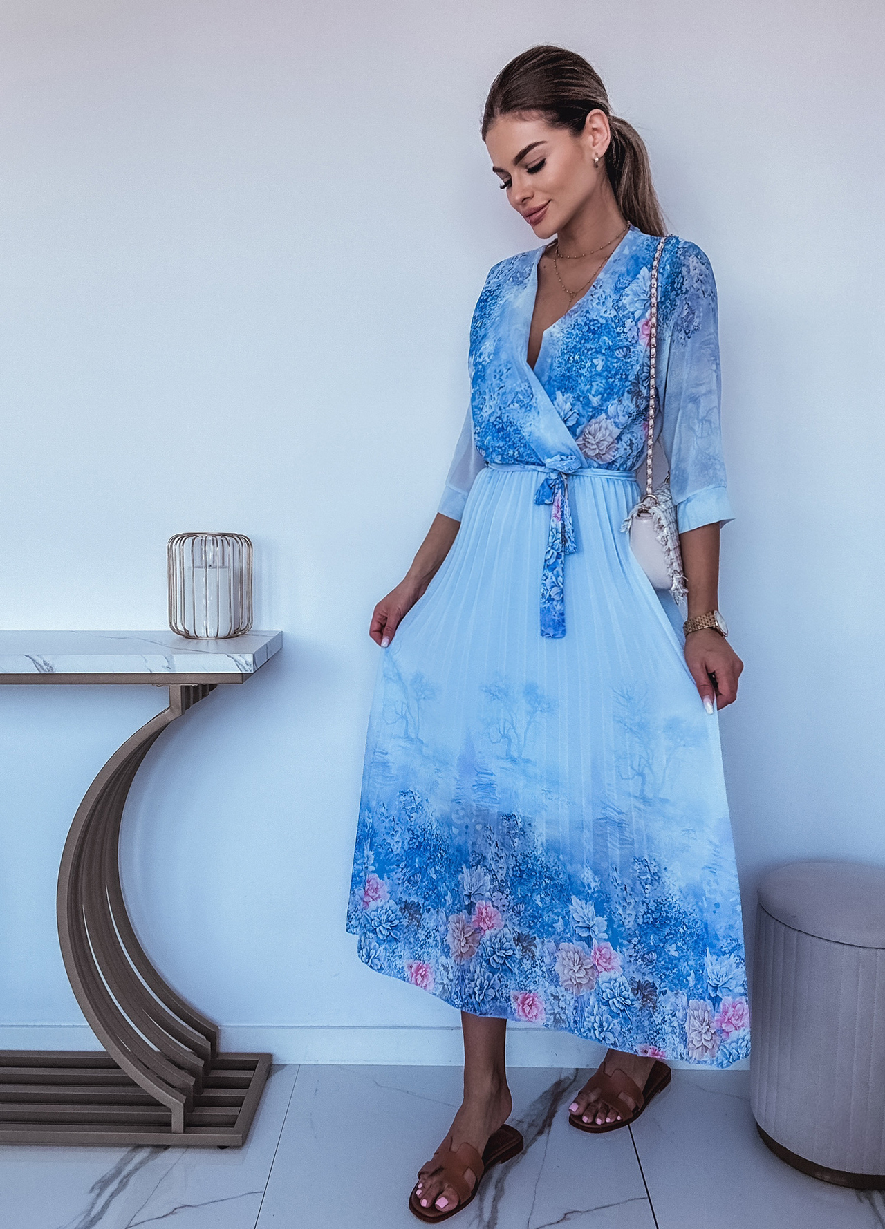 *Wzór: Sukienka maxi w kwiaty z kopertowym dekoltem.
