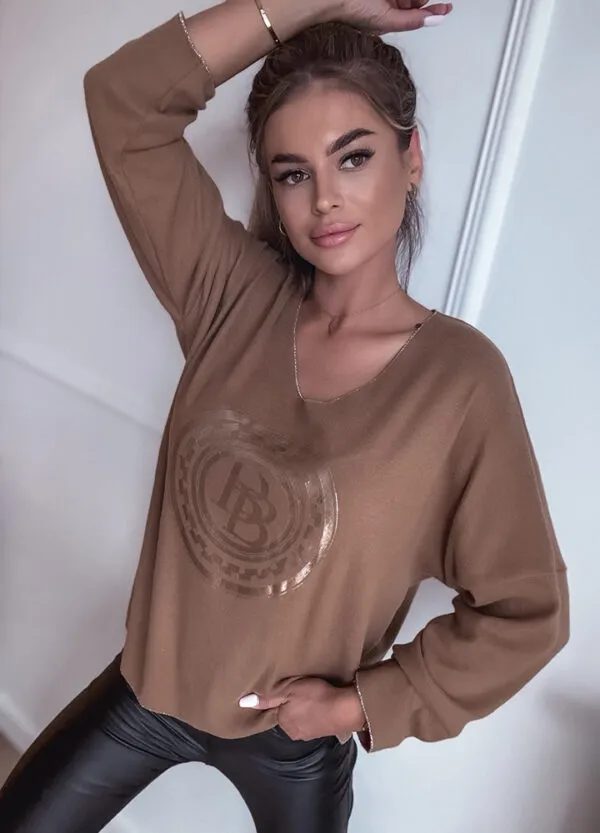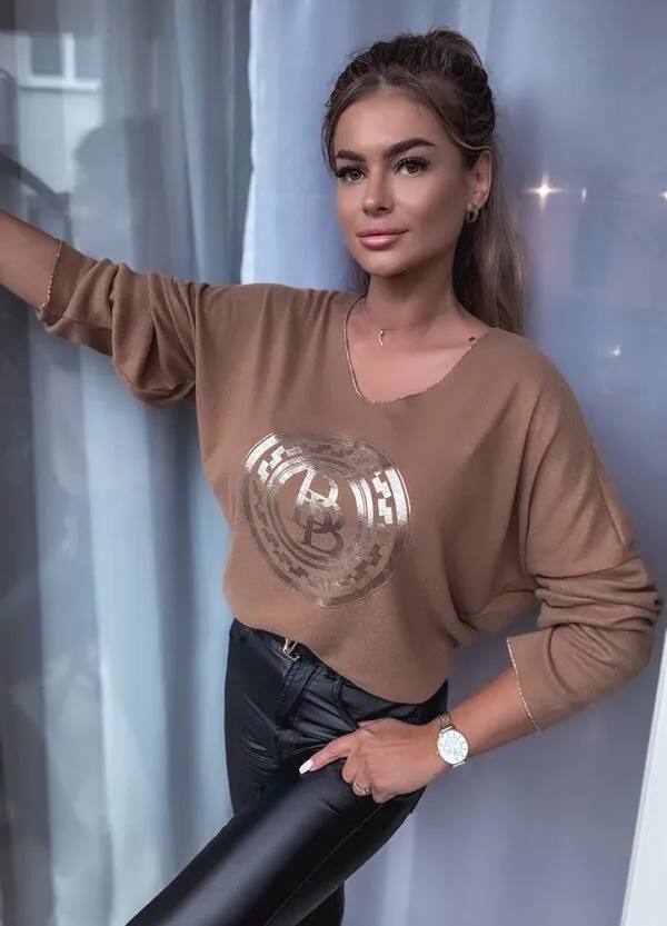 *Wzór: Sweterkowa bluzka ze złotym nadrukiem.