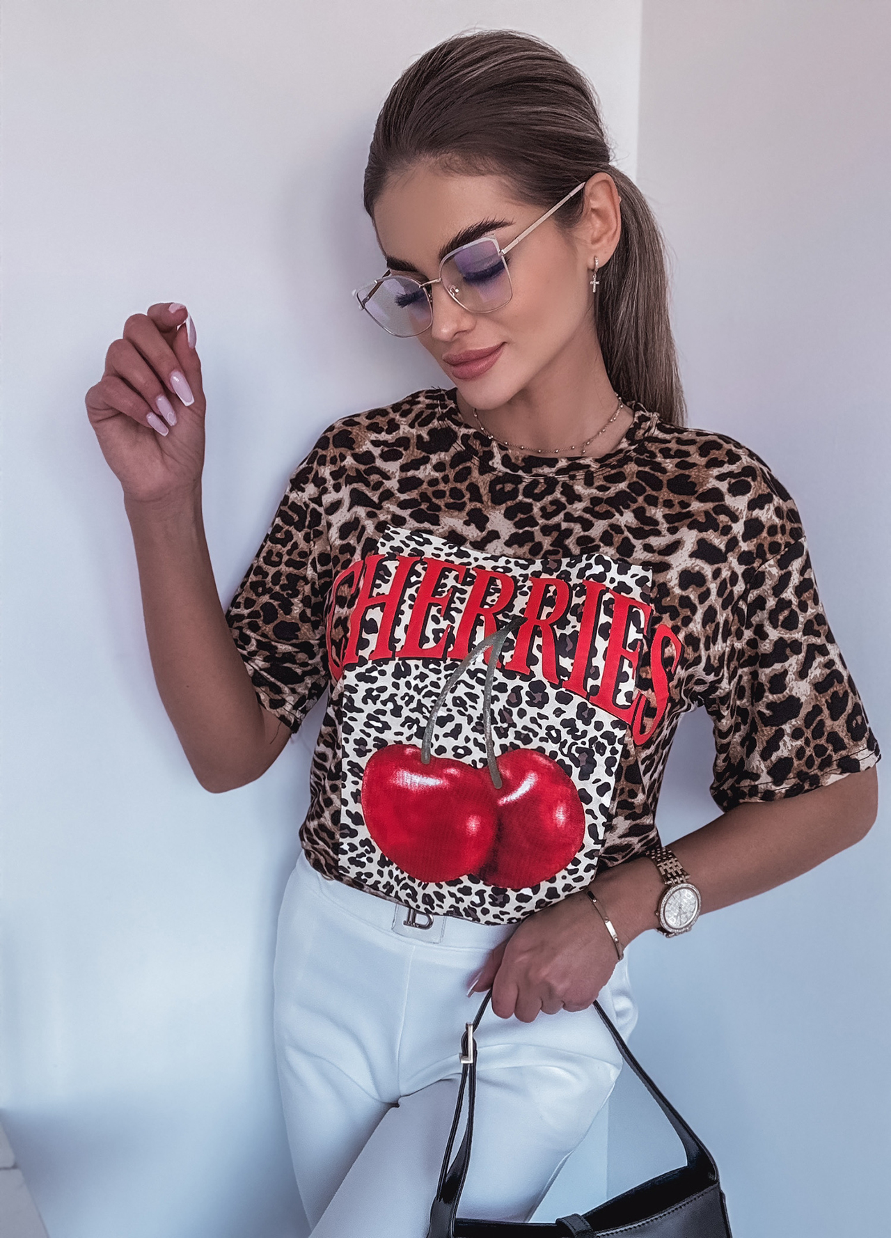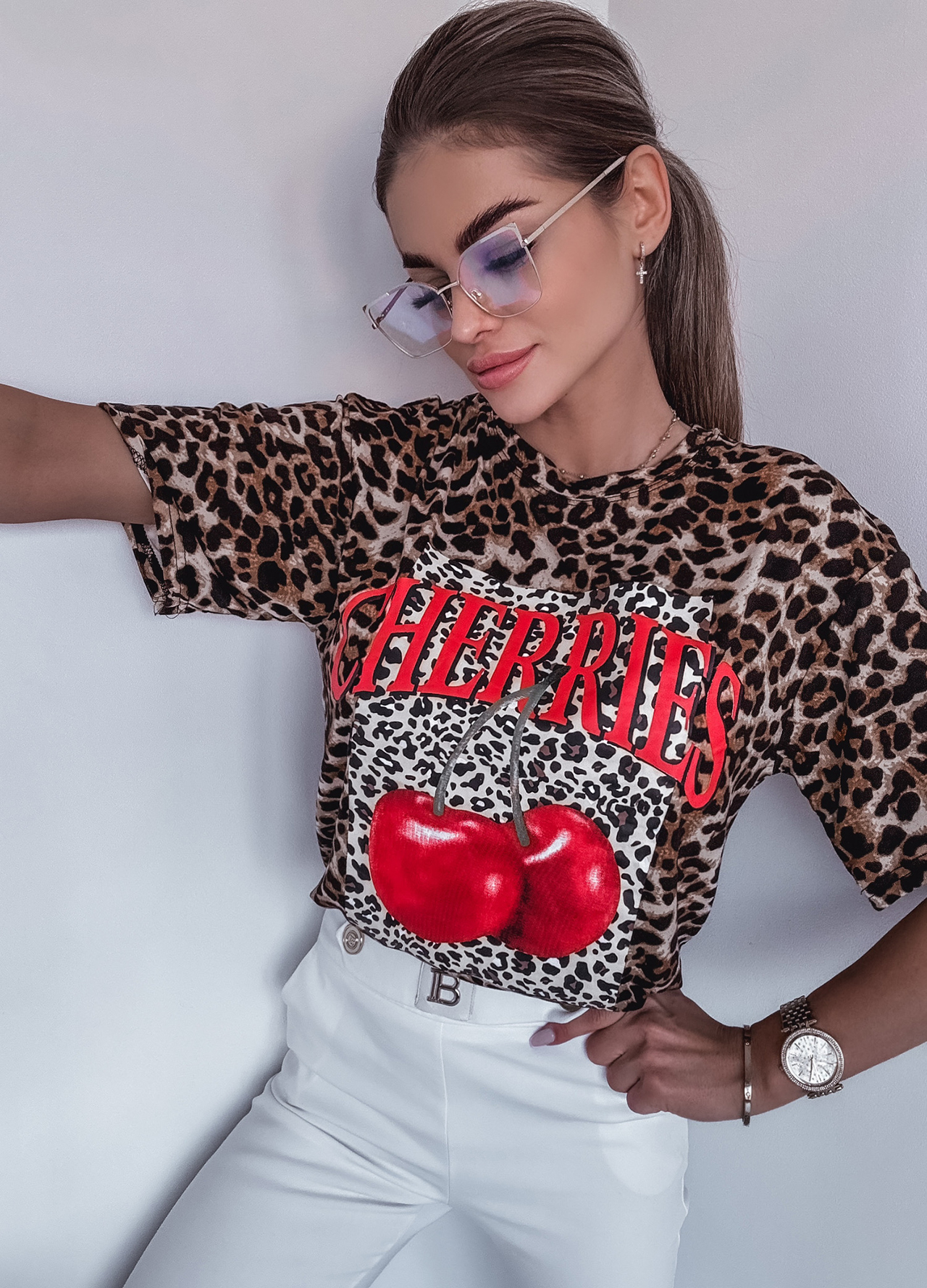 *Wzór: Bawełniany t-shirt w cętki z nadrukiem.