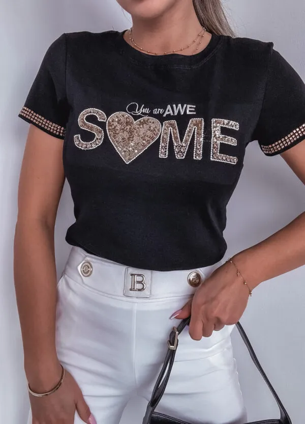 *Wzór: Bawełniany t-shirt z cekinami.