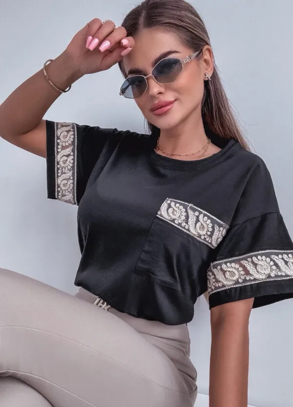 *Wzór: Bawełniany t-shirt z haftem na kieszonce.