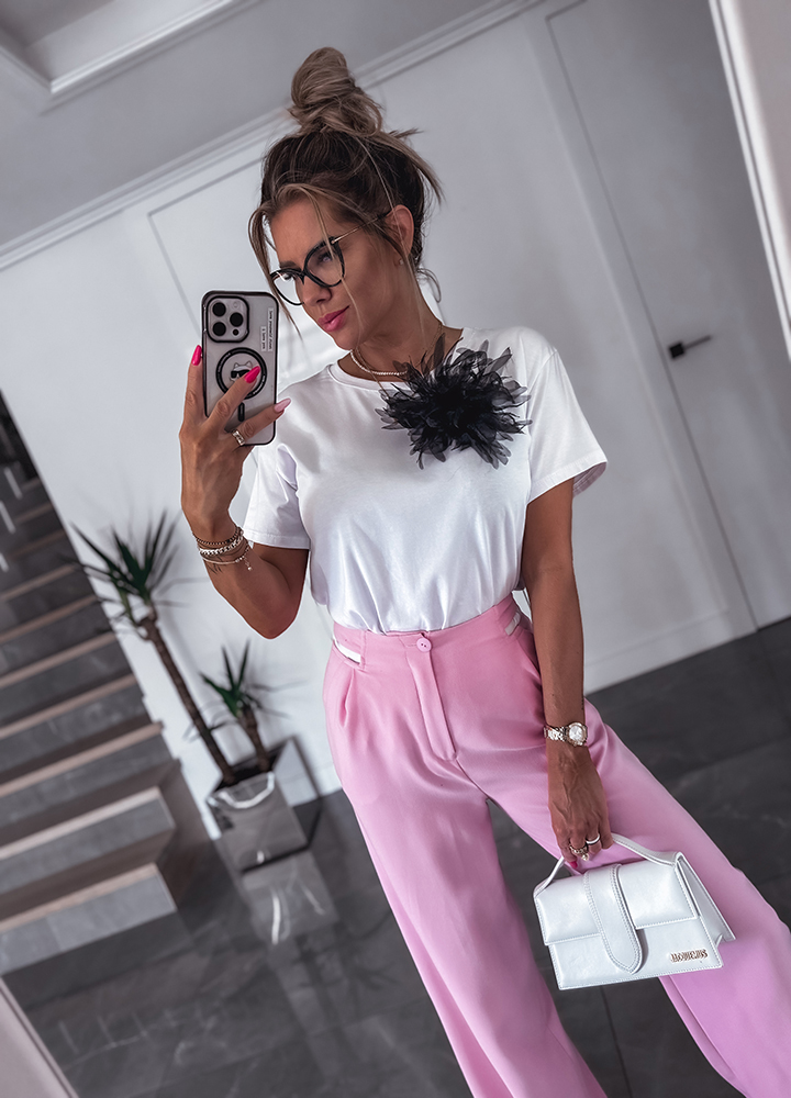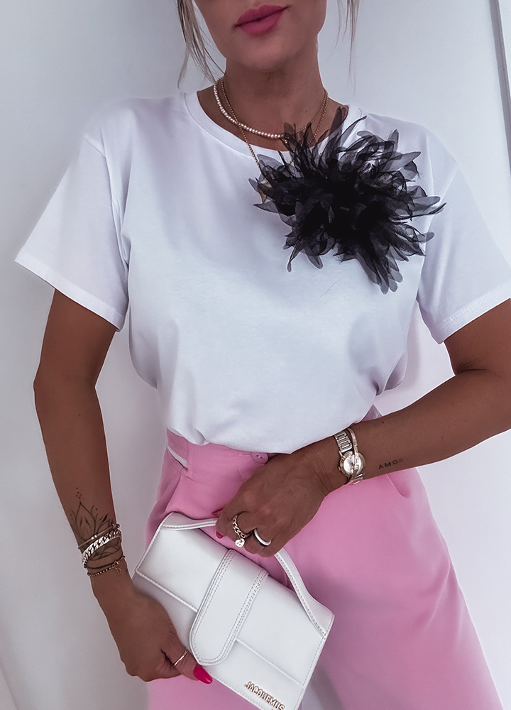 *Wzór: Bawełniana bluzka z tiulowym kwiatem.