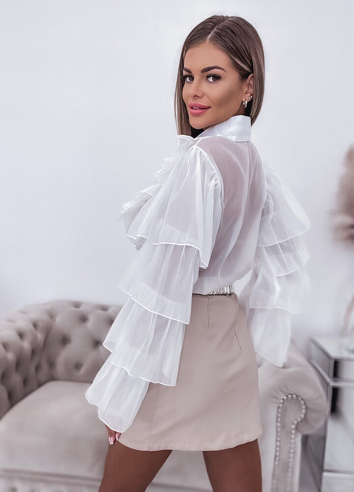 *Wzór: Tiulowa bluzka z falbanami. Zapinana na guziki.