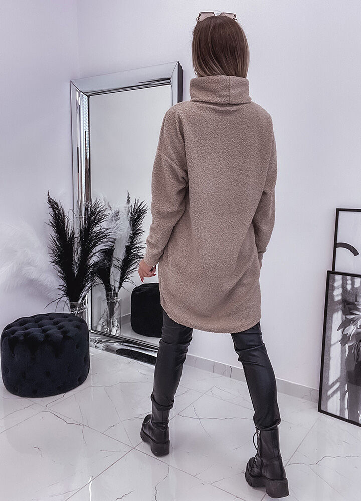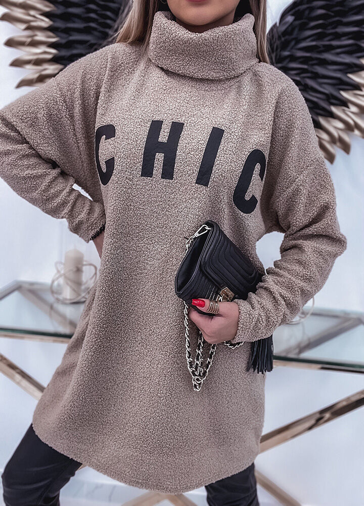 *Wzór: długa, bluza baranek z nadrukiem. Kolor ciemny beż.