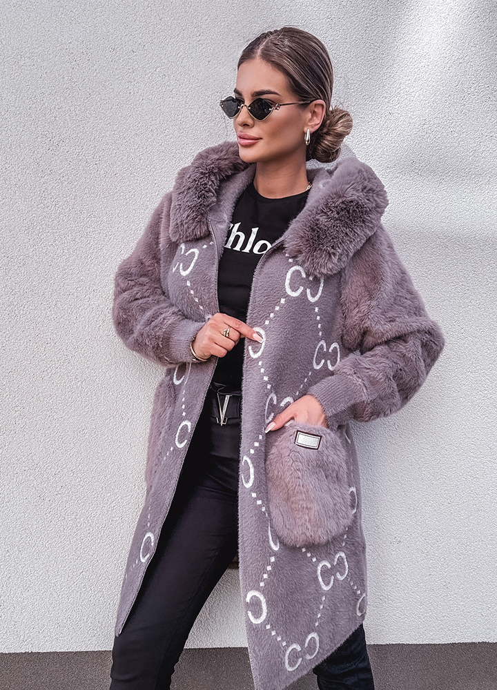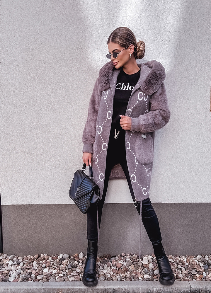 *Wzór: Alpaka z kapturem , kurtka zapinana na zamek , uszyta z miękkiego materiału z dodatkiem wełny i angory, rozmiar one size