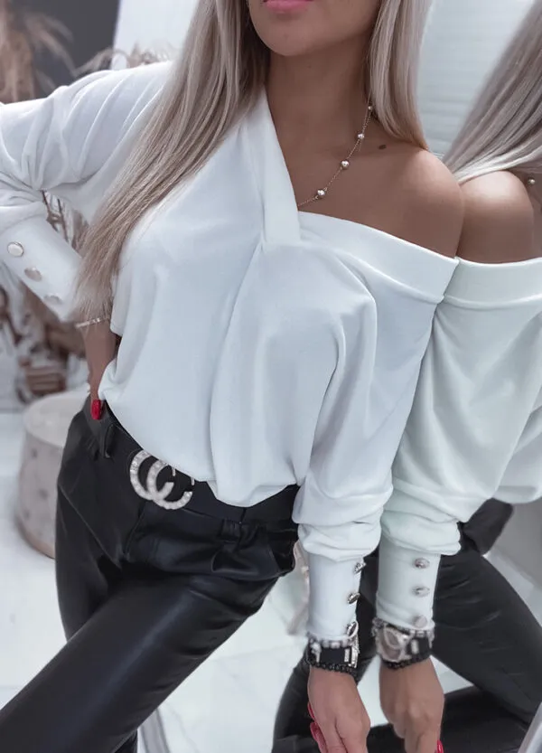 *Wzór: welurowa bluzka o jednolitym kolorze creame.