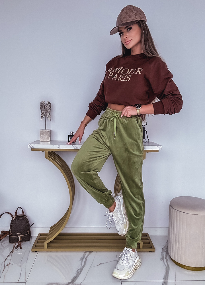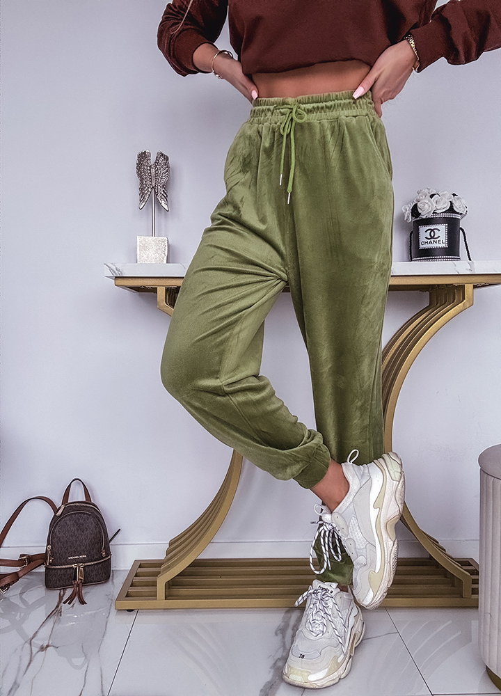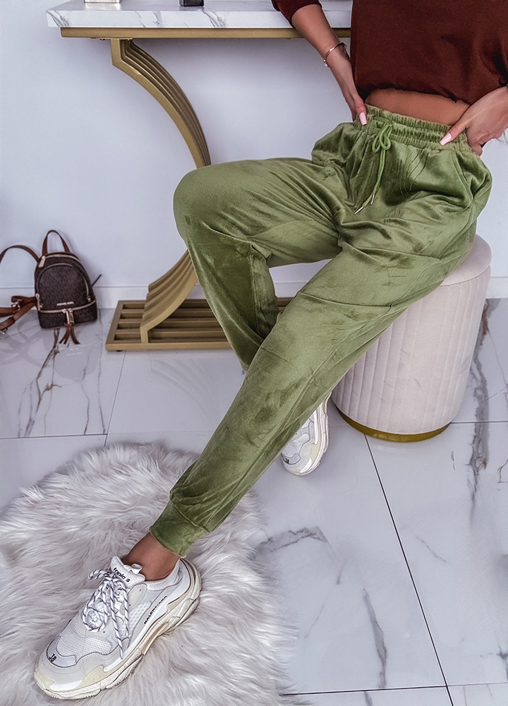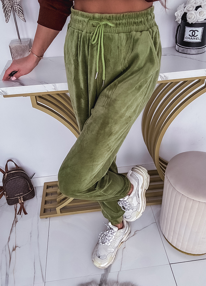 WELUROWE BAWEŁNIANE SPODNIE DRESOWE ZIELONE