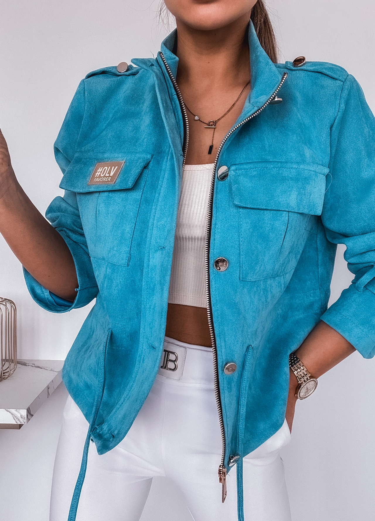 *Wzór: kurtka ramoneska zamszowa z baskinką.