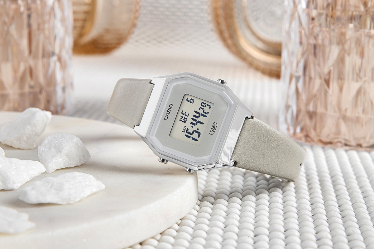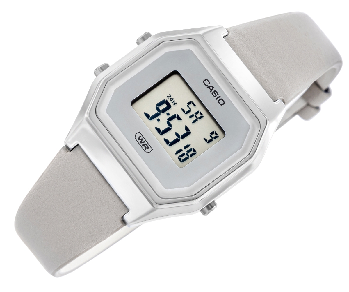 Casio LA680WEL-8EF – dla tych kobiet, które lubią jasne, pastelowe dodatki i srebrny błysk ukryty w codziennych detalach.