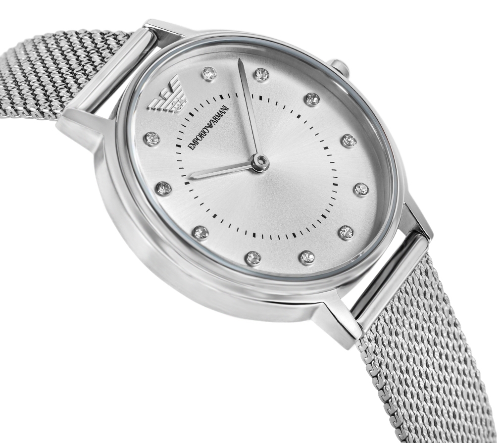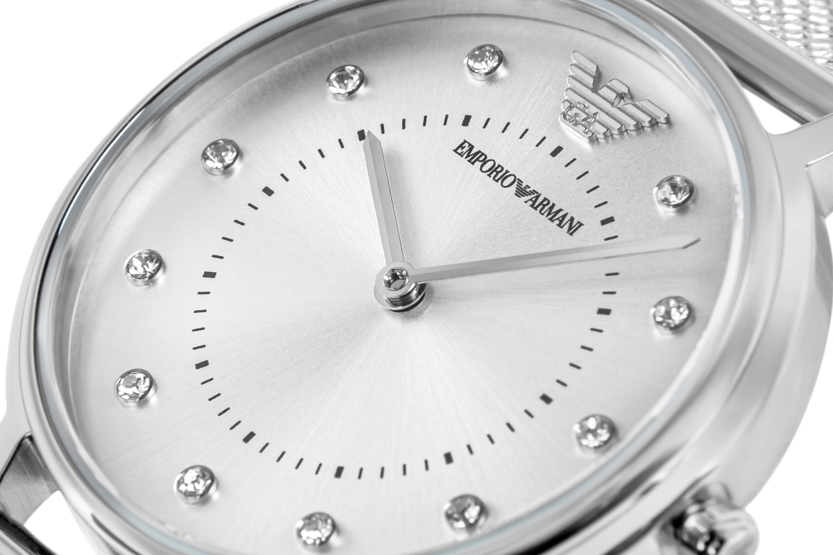 Zegarek Damski Emporio Armani Kappa AR11128 to elegancki czasomierz stworzony z myślą o kobietach ceniących włoski prestiż i ponadczasowy styl. Wykonany z wysokiej jakości stali szlachetnej w kolorze srebrnym, prezentuje się wyjątkowo elegancko i uniwersalnie, doskonale dopasowując się do każdej stylizacji. Minimalistyczna tarcza z charakterystycznym logo Emporio Armani oraz precyzyjny mechanizm kwarcowy gwarantują niezawodność i dokładność działania. Stalowa bransoleta typu mesh idealnie układa się na nadgarstku, zapewniając komfort noszenia przez cały dzień. Model AR11128 doskonale sprawdzi się zarówno w codziennych, jak i bardziej wyjątkowych okazjach. To symbol kobiecej elegancji, subtelności oraz luksusowego designu. Zegarek Emporio Armani Kappa AR11128 to idealny wybór dla kobiet, które pragną podkreślić swój styl i klasę.