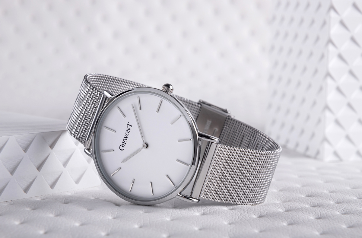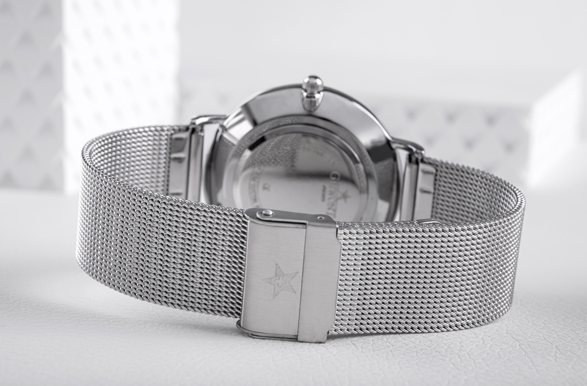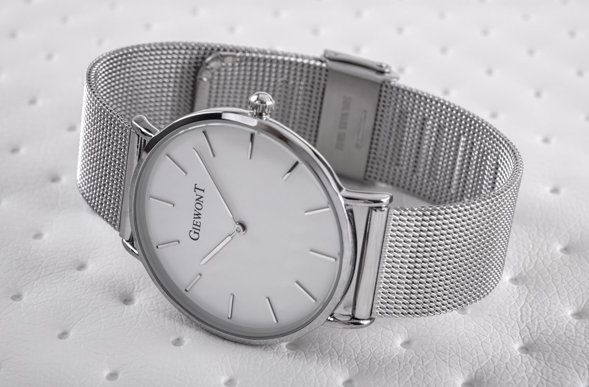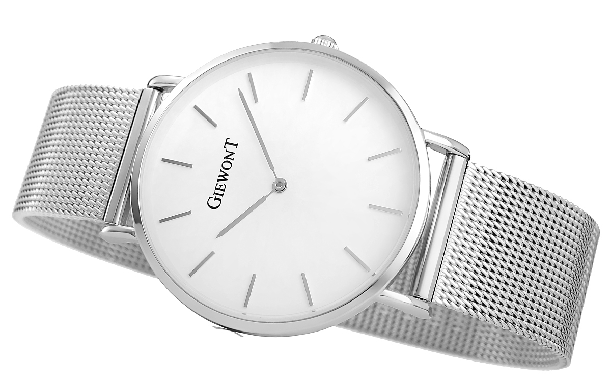 Komfortowa, stalowa bransoleta typu Mesh, to znakomite uzupełnienie tego zegarka. Rodzaj bransolety jest gwarancją solidności i wygody podczas codziennego użytkowania. Komfort dopełnia odpowiednia jakość stali, która komfortowo dopasowuje się do damskiego nadgarstka. Zapięcie sygnowane jest logiem marki Giewont, co podnosi prestiż zegarka i zapewnia wyjątkowość na tle innych marek zegarków.