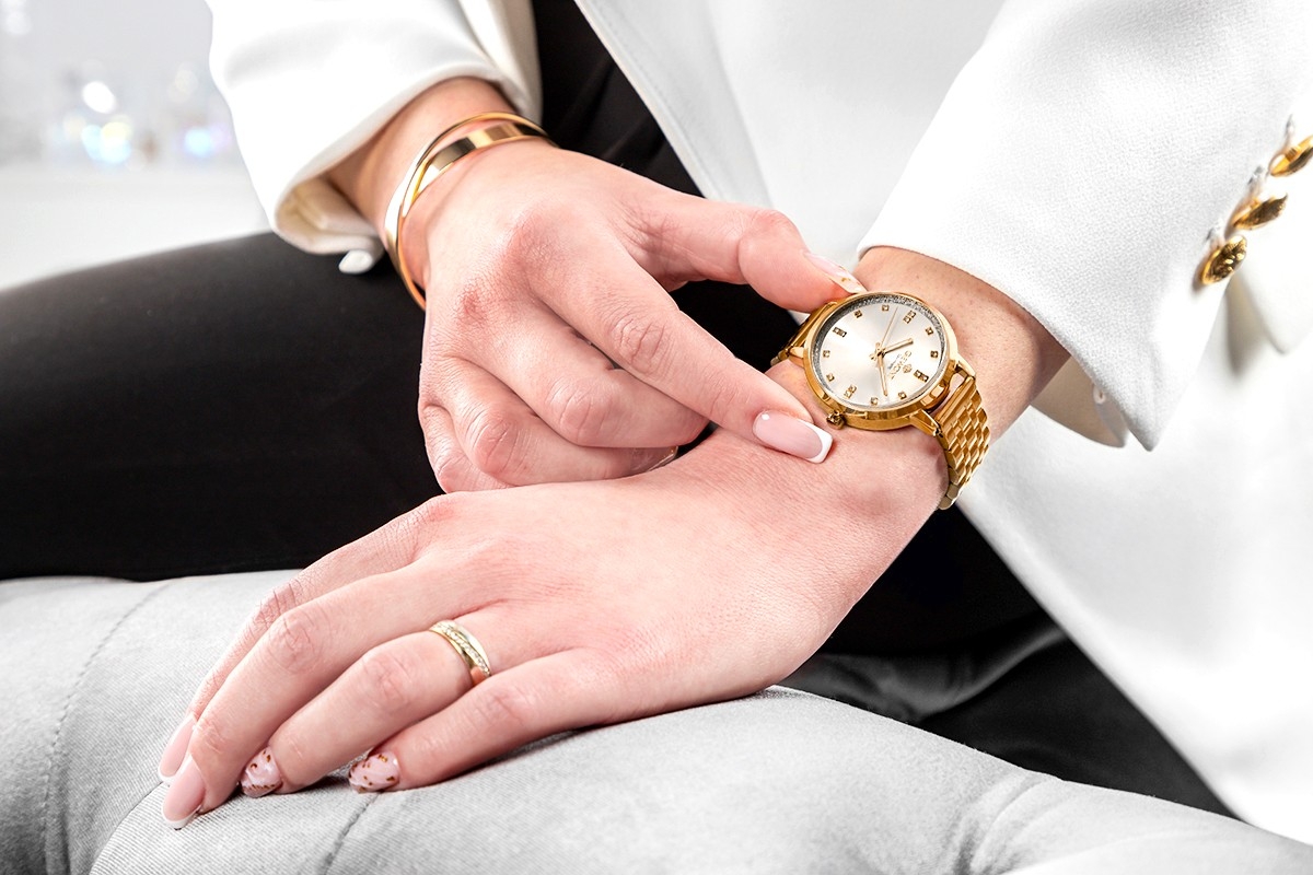 Mocna bransoleta wykonana z perfekcyjnie stali szlachetnej to element, który nie sposób przeoczyć. Każde ogniwo zostało zaprojektowane tak, by doskonale układać się na nadgarstku, zapewniając jednocześnie maksymalny komfort. Nieprzesadzona, doskonała w dotyku, wyrafinowana i solidna – jest jak stalowa obręcz, która mocno trzyma zegarek na Twoim nadgarstku, przypominając Ci o stabilności. Każde ogniwo jest starannie dopracowane, dzięki temu zegarek doskonale pasuje zarówno do codziennych, jak i formalnych stylizacji. Precyzyjnie wykonane zapięcie dopełnia ten mocny, kobiecy charakter zegarka.