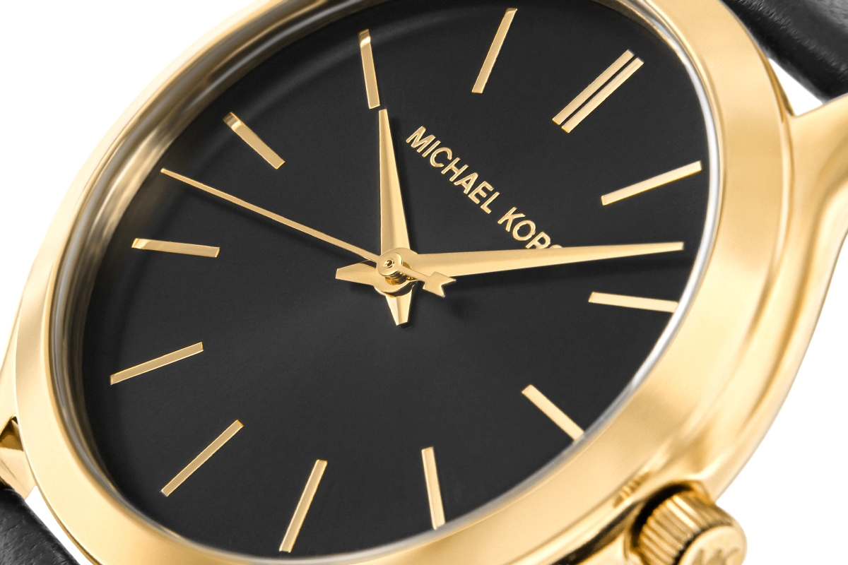 Zegarek damski Michael Kors Slim Runway MK7553 to propozycja dla kobiet, które cenią elegancję, ponadczasowy styl i dodatki o subtelnym, modowym charakterze. Model od razu przyciąga uwagę harmonijnym połączeniem złotej koperty, czarnej tarczy oraz czarnego paska, dzięki czemu prezentuje się bardzo kobieco, szykownie i z klasą. Smukła forma oraz minimalistyczne wykończenie sprawiają, że zegarek doskonale uzupełnia zarówno codzienne stylizacje, jak i bardziej eleganckie zestawy.