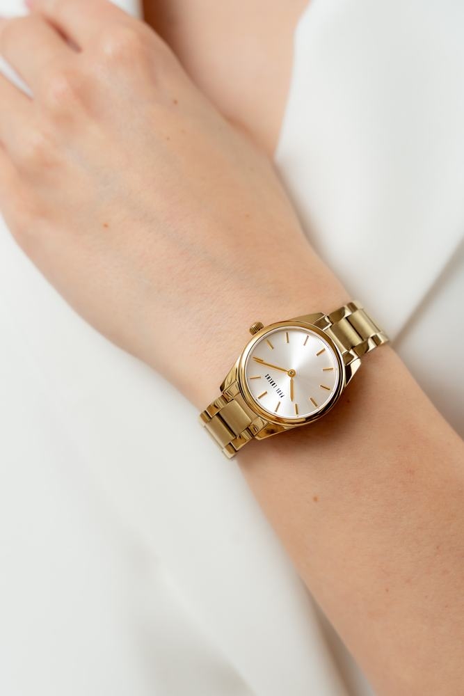 Jej gładka, delikatnie połyskująca powierzchnia harmonijnie oplata nadgarstek, zapewniając komfort noszenia przez cały dzień. Dzięki precyzyjnemu wyprofilowaniu idealnie dopasowuje się do kobiecej dłoni, subtelnie podkreślając smukłość nadgarstka i dodając każdej stylizacji elegancji. Stal nierdzewna łączy w sobie zarówno wytrzymałość, jak i lekkość, co sprawia, że zegarek nosi się z wyjątkową wygodą. Design bransolety idealnie balansuje pomiędzy luksusem a codzienną prostotą, sprawiając, że ten model zegarka jest idealny zarówno na wieczorne wyjścia, jak i na co dzień. Całość dopełnia logo Paul Lorens na zapięciu bransolety.