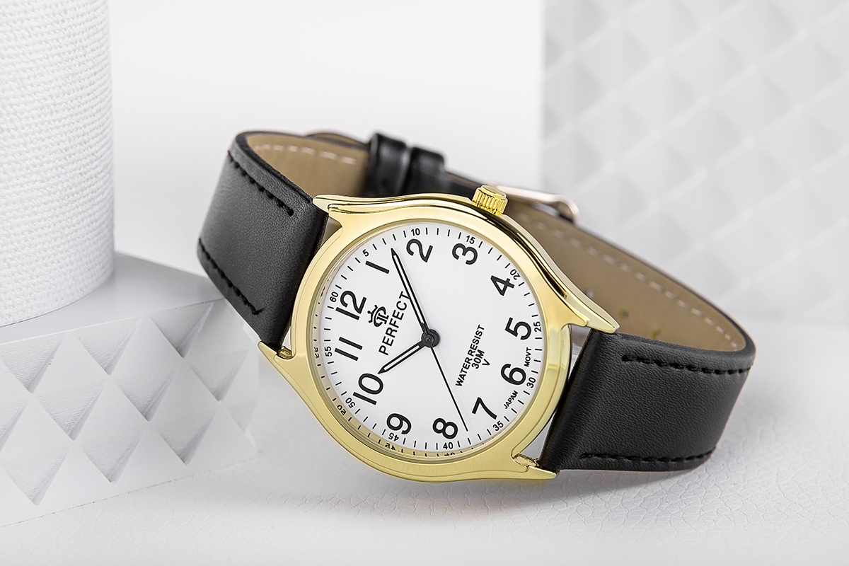 Skórzany pasek tego zegarka to kwintesencja klasy i wygody. Wykonany z najwyższej jakości materiału, komfortowo dopasowuje się do nadgarstka, oferując nie tylko trwałość, ale też elegancki wygląd. Jego miękkość zapewnia komfort noszenia na co dzień, a perfekcyjne wykończenie podkreśla charakterystyczny styl marki Perfect.